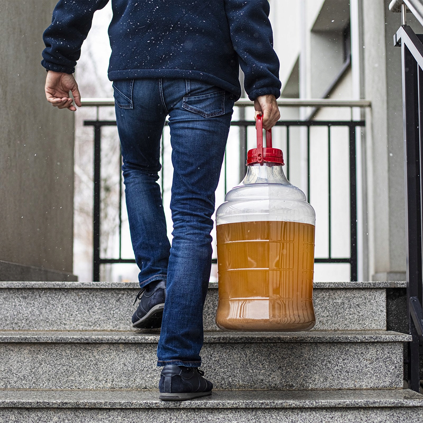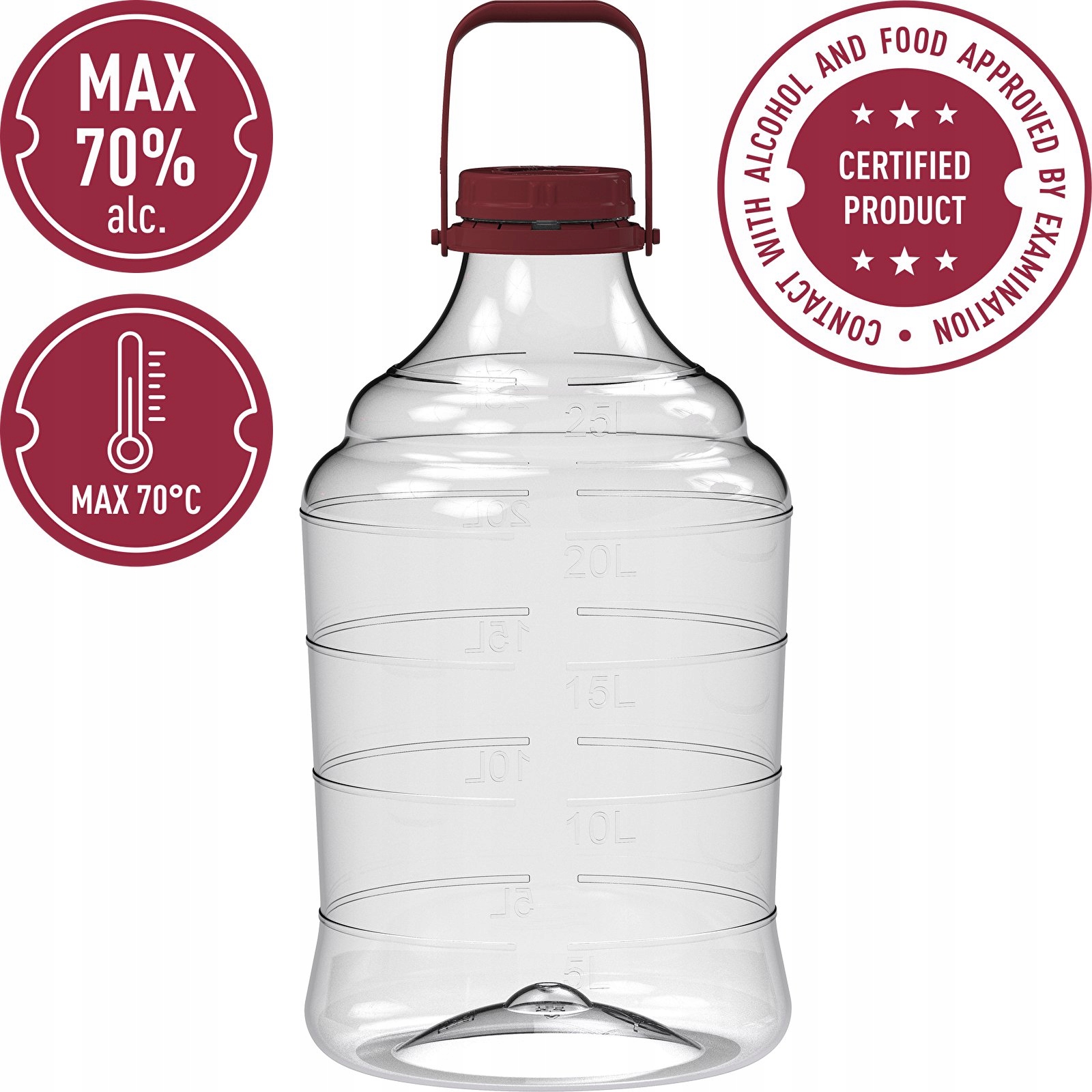 Небьющийся пластиковый баллон для вина и пива с завинчивающейся крышкой, трубкой для брожения и ручкой для переноски, 25 л - широкое отверстие, завинчивающаяся крышка, трубка для брожения, мерная шкала.