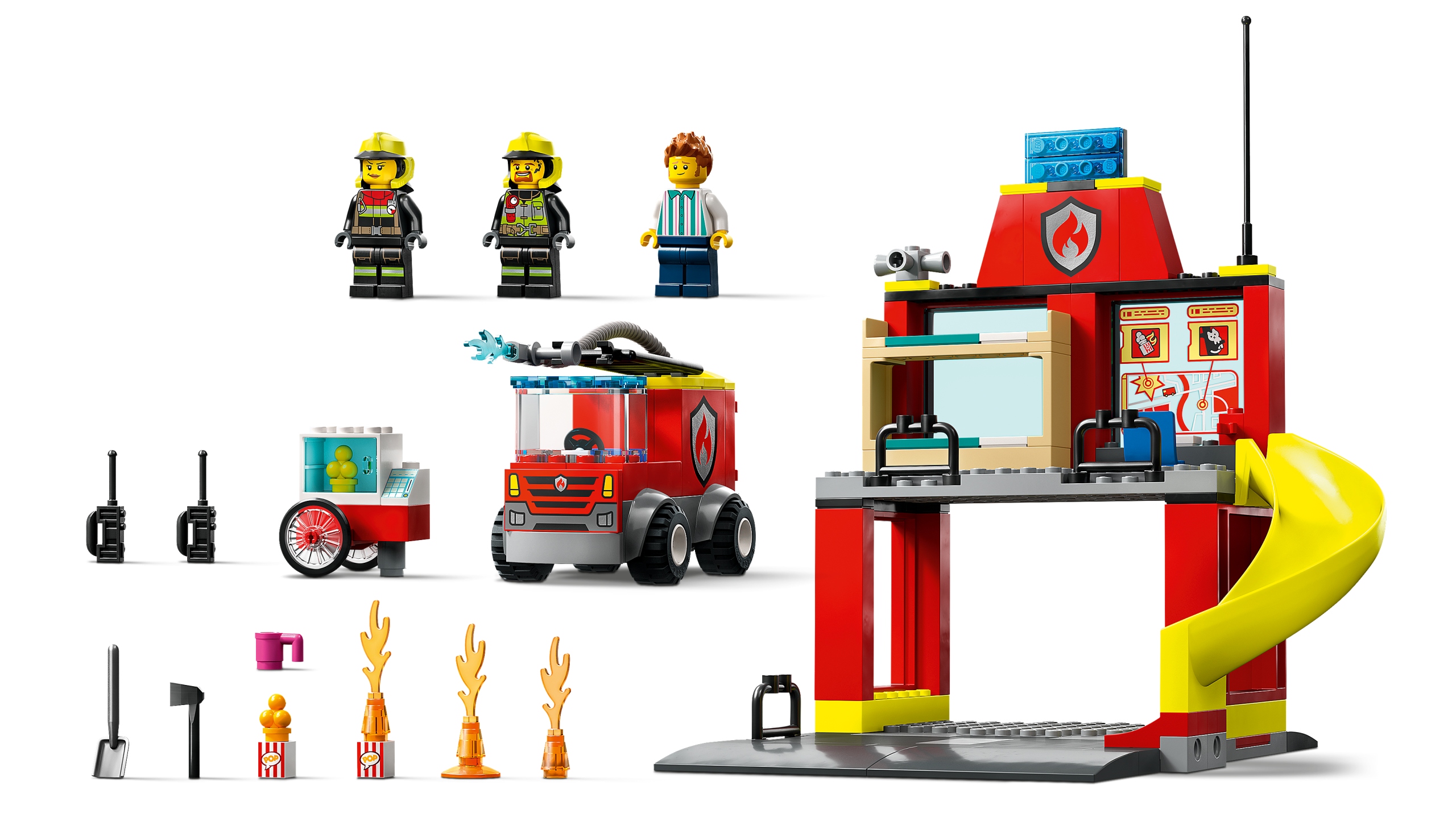 - Набор «Пожарная команда» для детей от четырех лет и старше — набор «Пожарная станция и пожарная машина» (60375) знакомит детей с миром LEGO® City, где им предстоит играть роль повседневных героев и быть на высоте центр действия