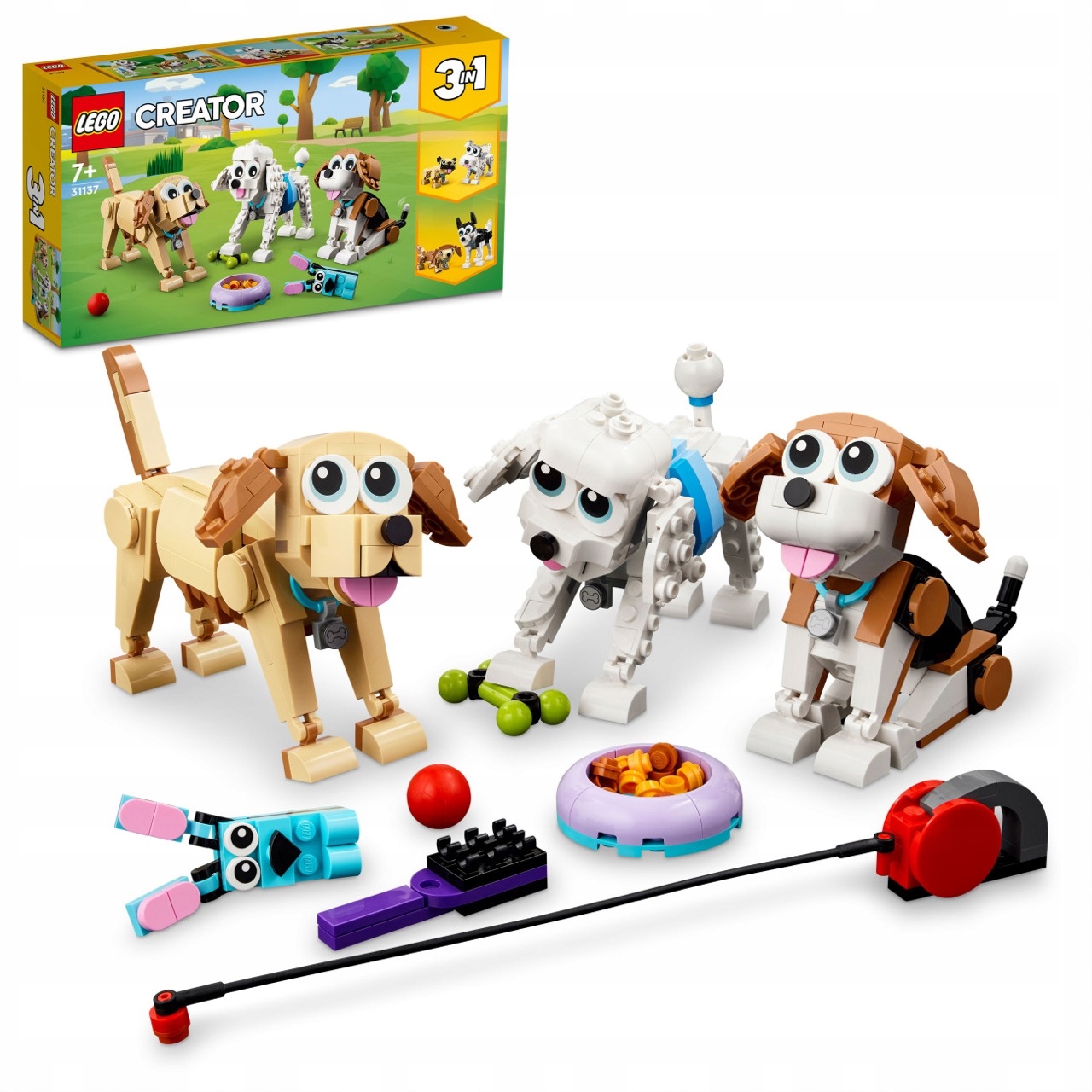 • Набор «3 в 1» — дети могут создать три разные группы собак с помощью набора «Очаровательные собаки» LEGO Creator 3 в 1 (31137)