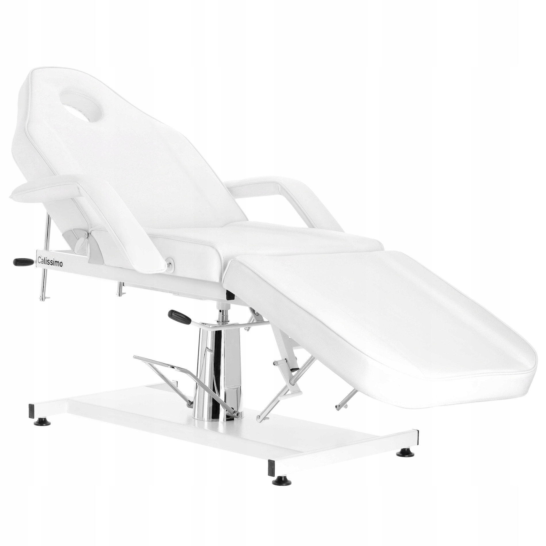 Кресло с отверстием в подголовнике идеально подходит для косметики, визга и массажа . У него есть съемные подлокотники и крышка в подголовке. Общерадование стула легко моется, сделано из эко-кожи, отвечает строгим требованиям ЕС, эстетическим, никелированным металлическим элементам.
