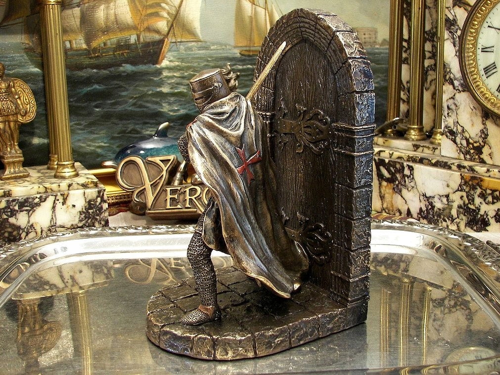 Фигурка рыцаря выполнена очень точно, видна каждая деталь, поза полна динамики. Изделие расписано вручную. Эта замечательная вещь, которую можно использовать в качестве украшения мебели или камина, по сути, является подставкой для книг. Если купить две штуки, это будет самостоятельная полка. У нас также есть второй рыцарь для завершения набора.