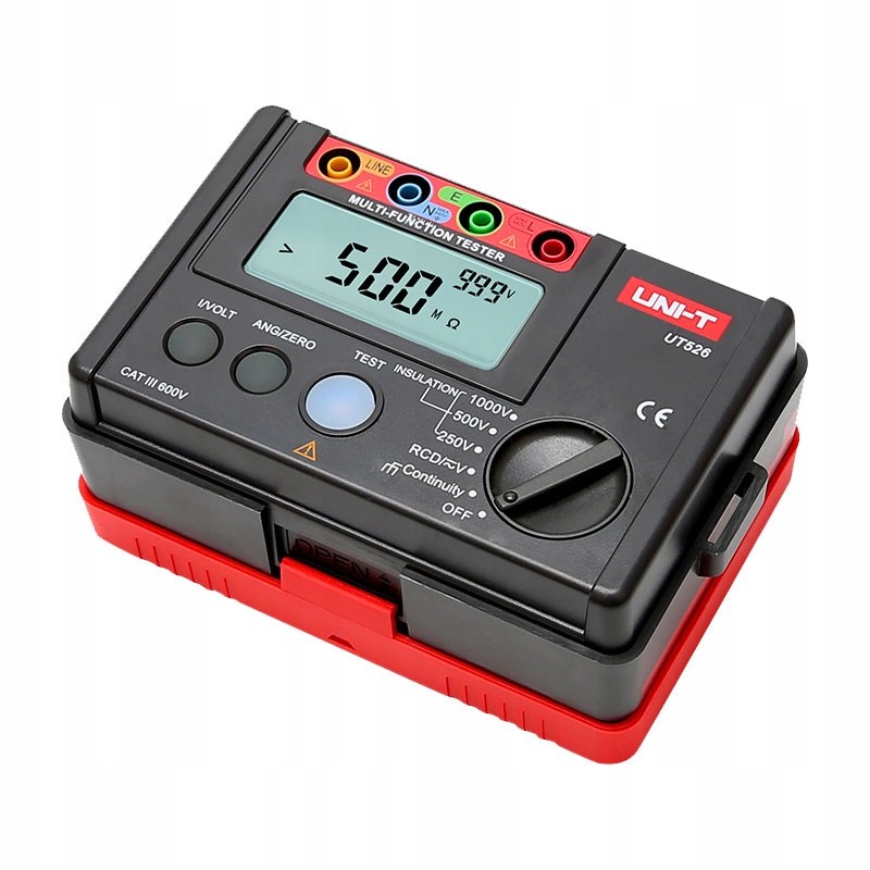 UT526 -это цифровой многофункциональный измерительный счетчик в электрических установках. UT526 -метр в первую очередь используется для измерения сопротивления изоляции до 500 МОм (0,5 ГОм). Мы можем выбрать из трех тестовых значений напряжения: 250 В 500 В 1000 В (1 кВ). Вторая очень полезная функция - это тест RCD -тестирования, проверка дифференциального тока. Функция измерения непрерывности в UT526 выполняет тест сопротивления линии заземления. UT526 -метр характеризуется высокой точностью, стабильностью, эффективностью и надежностью. UT526 легко использовать для электриков. UT526 является идеальным выбором для ремонта, технического обслуживания и тестирования RCD всех электрических устройств.