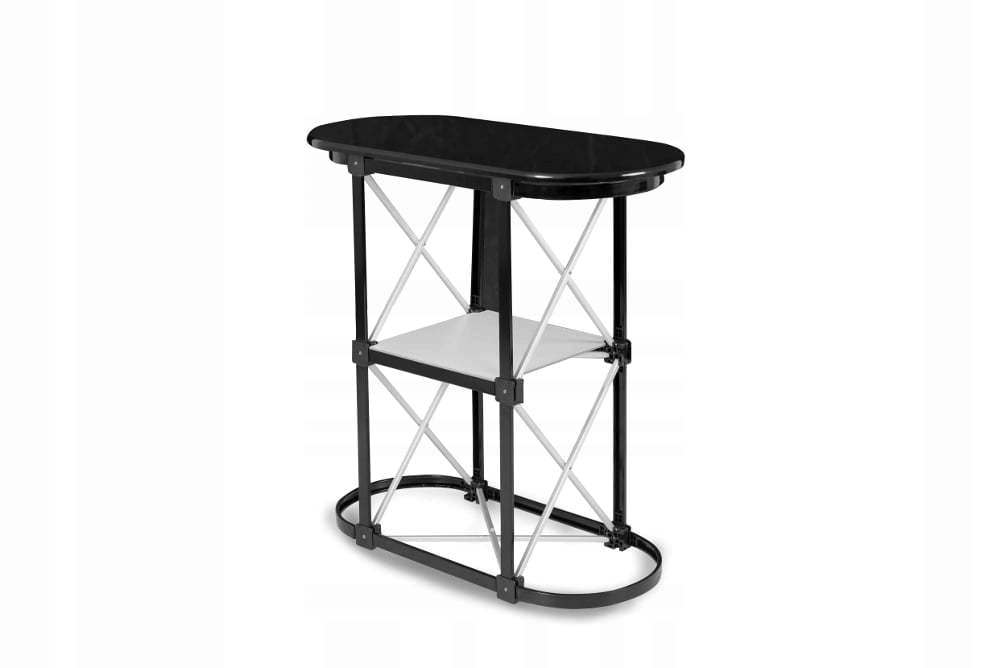 Стойки серии POP UP – это другие продукты, структура которых работает по принципу небольшой всплывающей стены. Графика представлена на панелях ПВХ, как и в случае со стандартной всплывающей стеной. Большой, тяжелый и очень элегантный презентационный стенд из высококачественного металла, элементы с порошковым покрытием черного цвета и элегантная лакированная стойка.