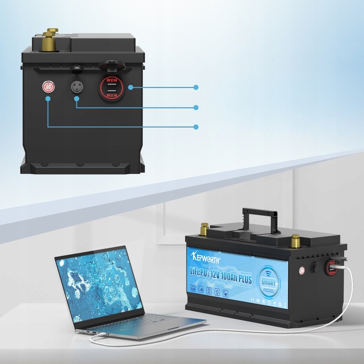 powerbank lifepo4 kepworth 12v 100ah 100000mah bluetooth safe h1> - Более легкий вес - батарея LifePo4 100AH весит примерно на 18 кг меньше, чем его аналог в области кислотной технологии, и предлагает 100% полезную мощность и и мощность. адаптирован к циклической и глубокой работе Выписка. От -20 ° C до 55 ° C позволяет их использовать в Камперы, лодки, электрические коляски или солнечные батареи