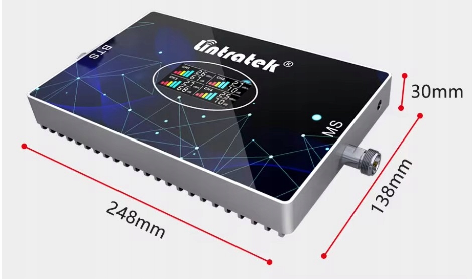 4-полосный усилитель Сигнал имеет четыре ЖК-экрана, которые могут отображать рабочее состояние каждого диапазона частот. Внутренняя и наружная антенны являются всенаправленными. Имеет очень высокий коэффициент усиления 10дБи