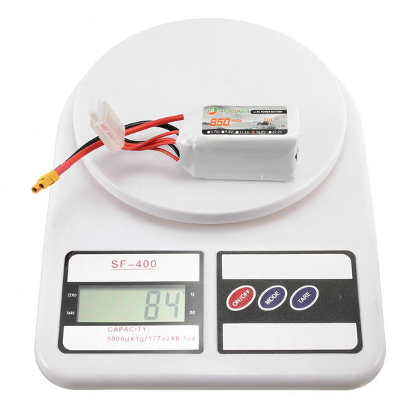 Параметр батареи: XF Power 14.8V 850MAH 4S 70C Bipo Battery Вместимость: 850 мАч Размер: 35*30*56 мммм Постоянная эффективность сброса: 70c Вес: 120 г Цвета: стандартные цвета