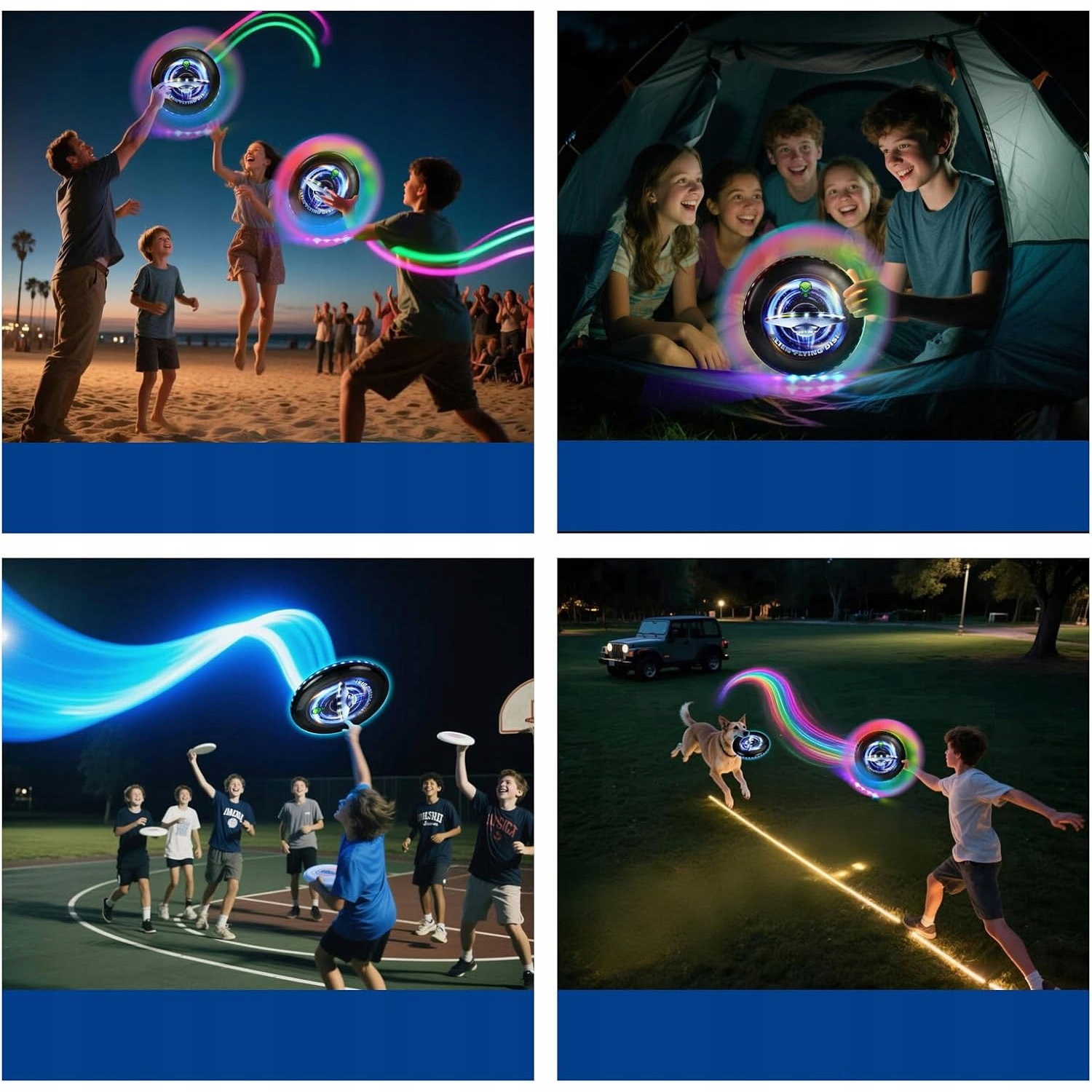 Светодиодный диск имеет 12 завораживающих красочных световых эффектов 🌈 на внешнем краю! Виден даже ночью – повышает безопасность и удовольствие. Будьте самой яркой звездой вечера!💡