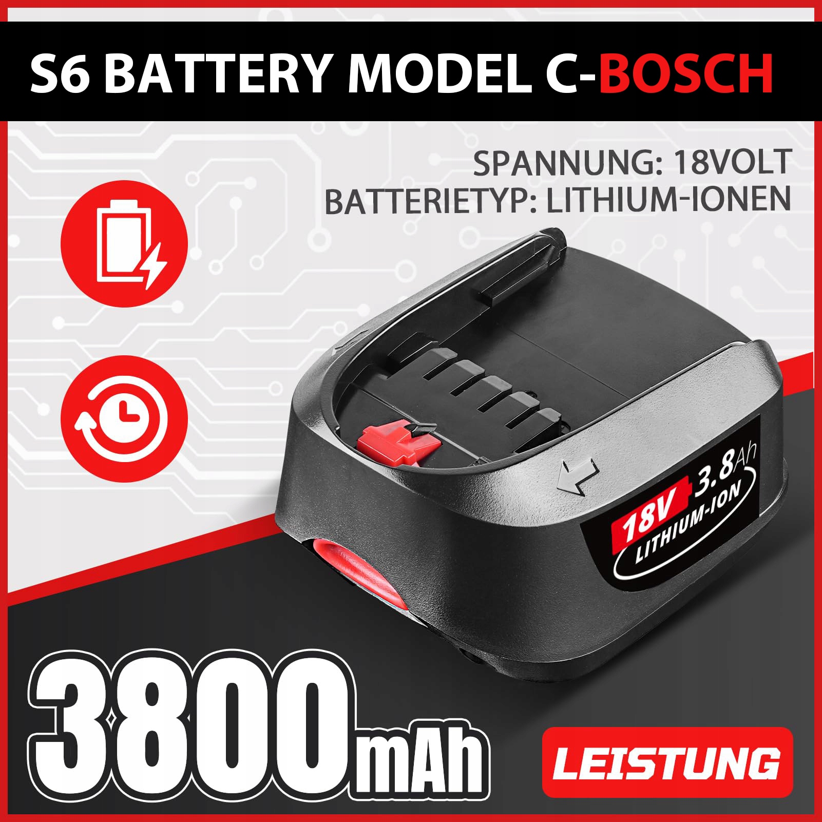 Ионная батарея Litowo 18 В 3,8 ах батарея для Bosch PBA PSB Black