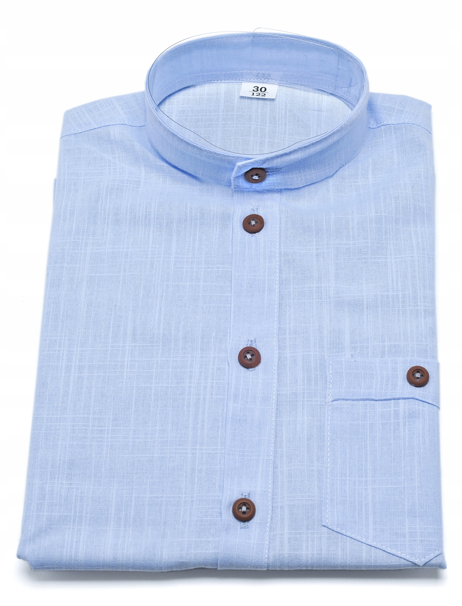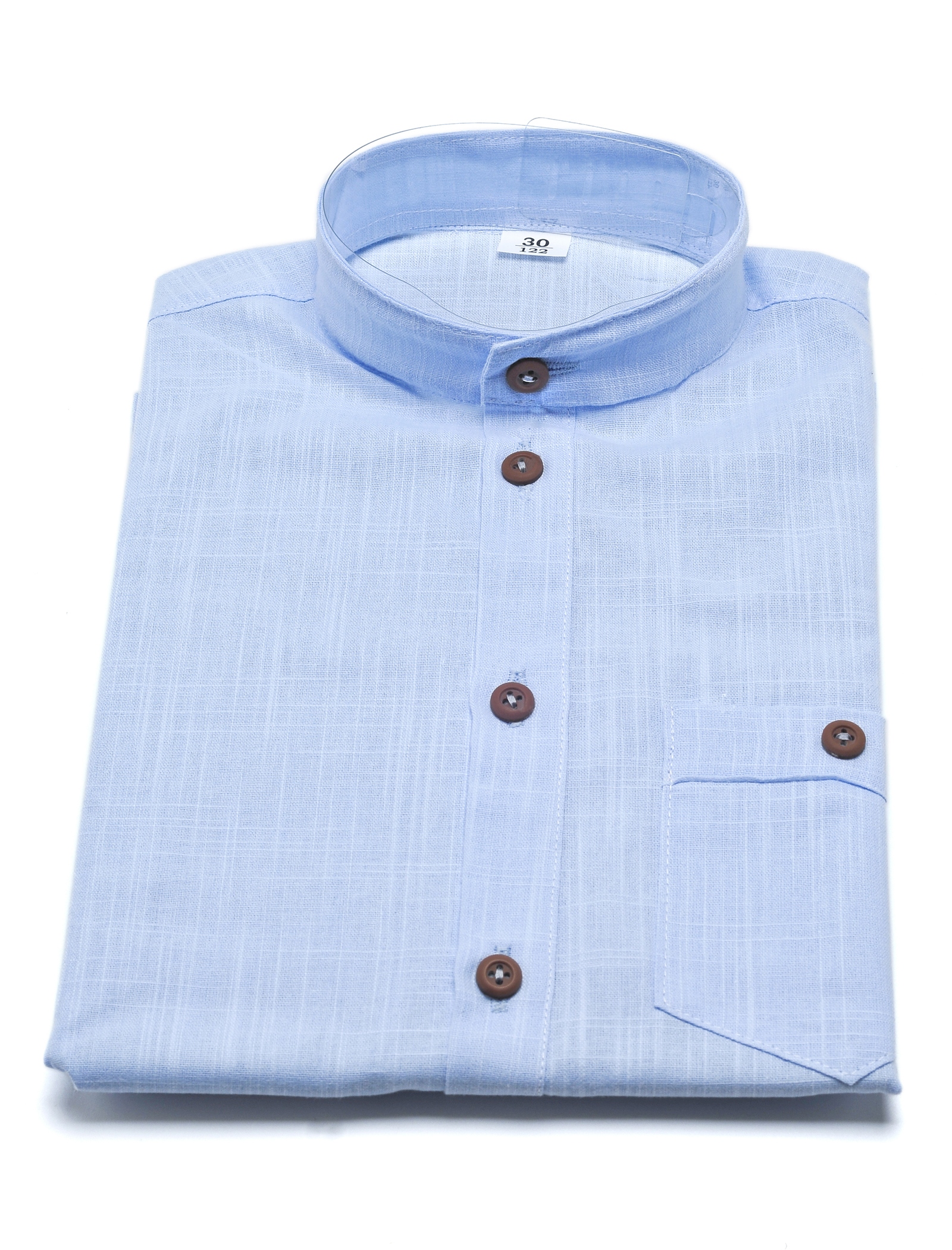 ЛЛЯНА СОРОЧКА ДЛЯ ХЛОПЧИКІВ З КОМІРОМ-СТІЙКОЮ ТА ДОВГИМИ РУКАВАМИ СИНЯ 152