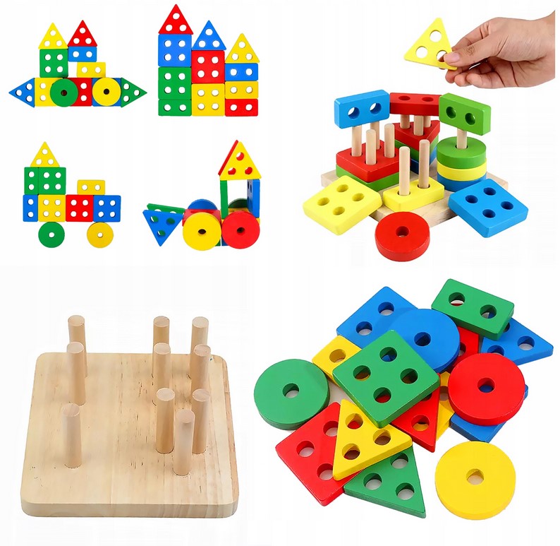 Игра включает в себя сборку и разборку, чтобы они могли собрать один из четыре башни, выбрав подходящую форму.Деревянный элемент.