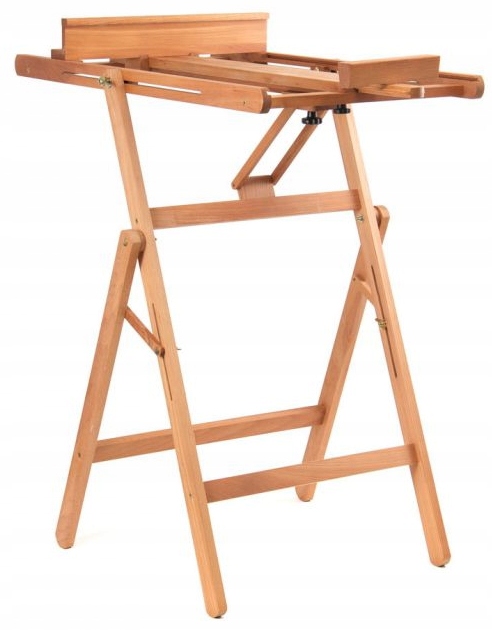 Данный мольберт очень легко складывается, так как он имеет складное основание, что удобно при хранении и транспортировке, а в сложенном виде не занимает много места.