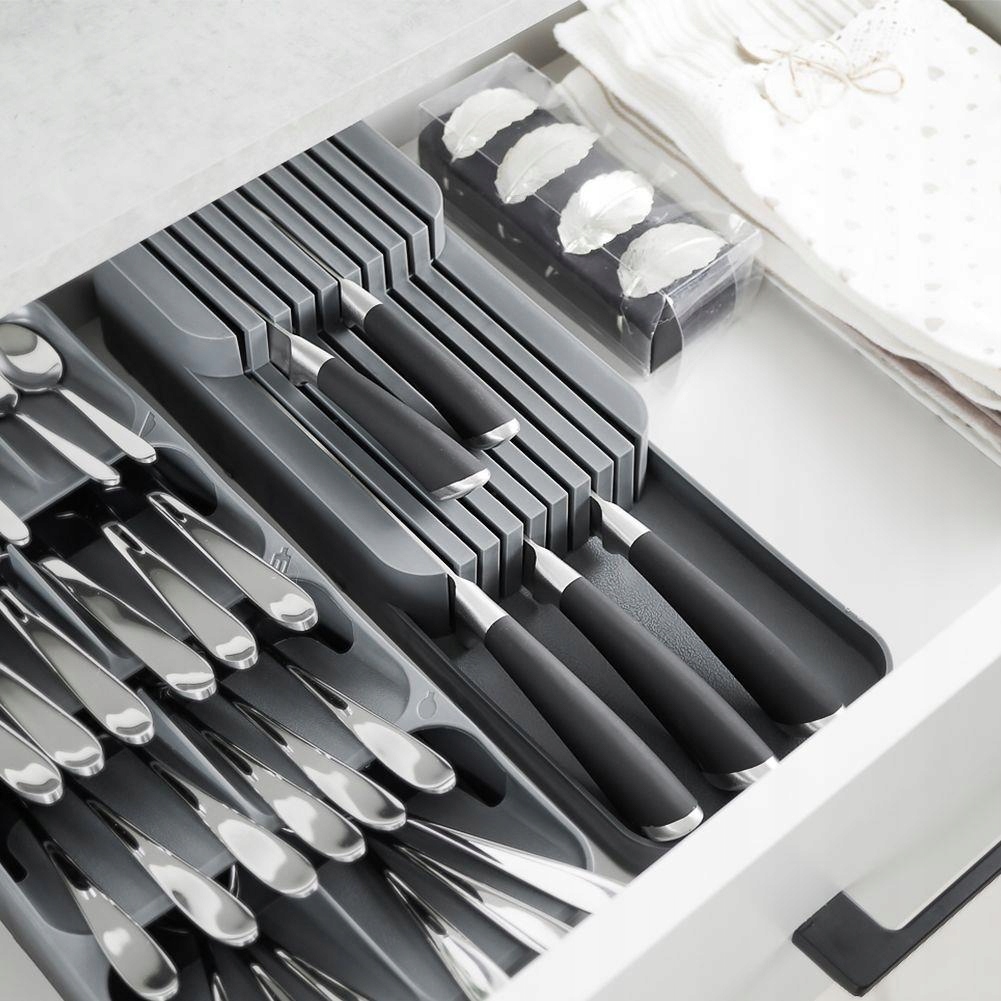 Органайзер-вставка в ящик для кухонных ножей, серый