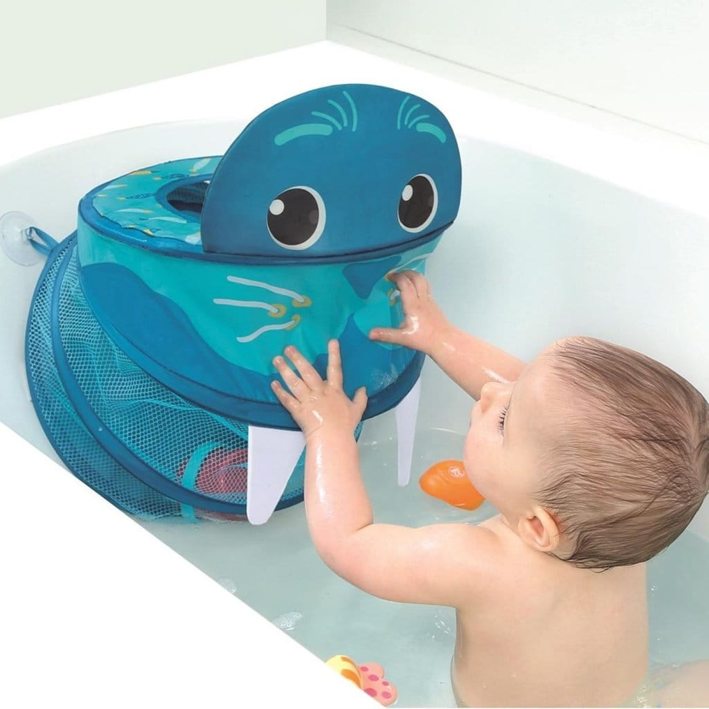 Организатор для купания игрушек - это практическое решение для поддержания порядка в ванной комнате. Большая корзина для игрушек, изображающих хорошего моржа, есть всасывающие чашки, с которыми вы можете прикрепить ее к стене или плиткам. Огромный живот моржа будет держать много игрушек. Нижняя часть изготовлена из сетки, которая позволяет доступ к воздуху и отток воды из игрушек.
