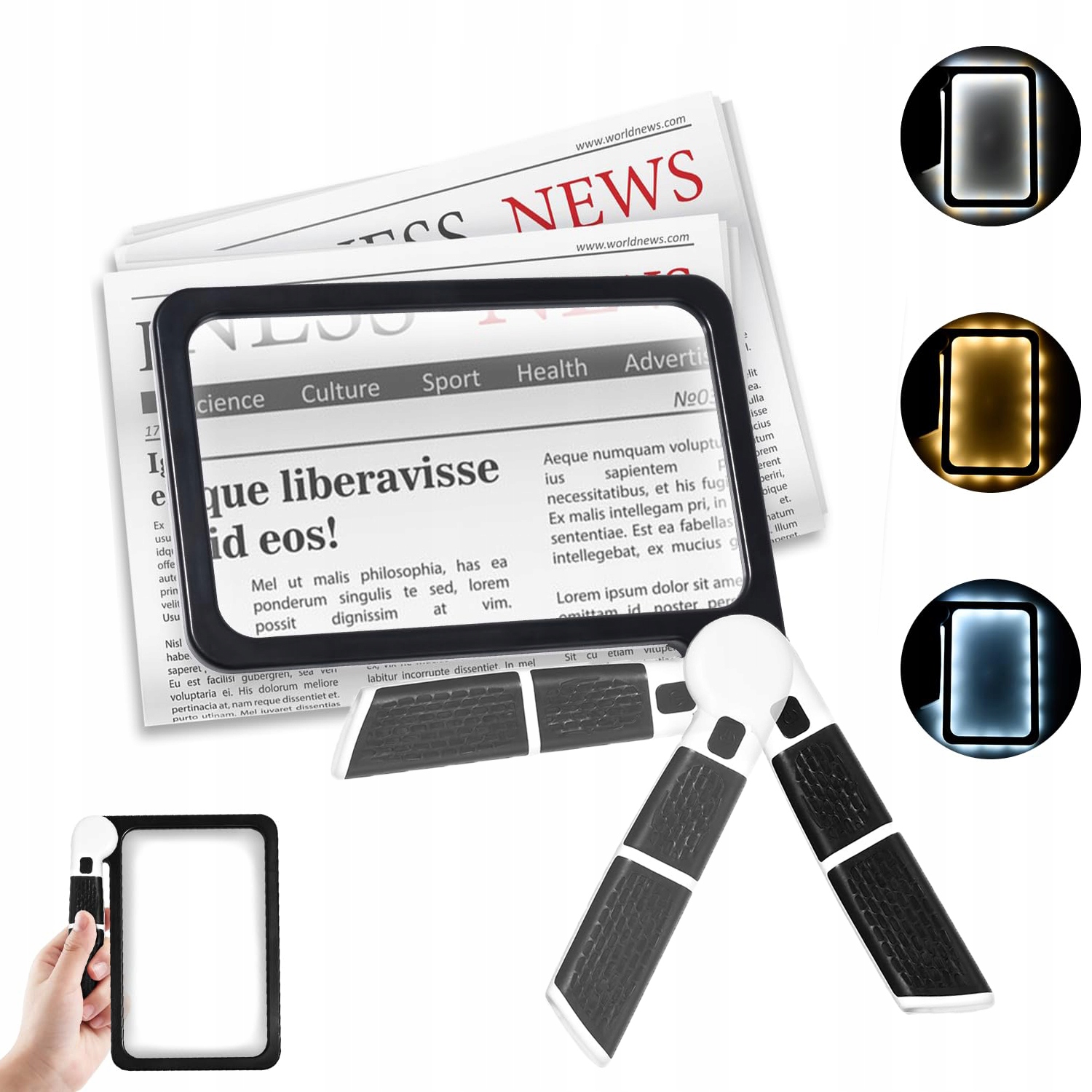 Это освещенное увеличение с акриловой оптической фольгой, которая устойчива к царапинам и трещинах, легче, чем стекло с увеличением до 5x, обеспечивает четкие, увеличенные изображения без искажения и улучшения читаемости. Это помогает пожилым людям и слабости людям легко получить доступ к очень мелким деталям в книгах с небольшими печатью, газетами, журналами, фотографиями, картами, библами, марками, миниатюрами, ювелирными изделиями, бутылками с лекарствами и широким спектром мастерства.