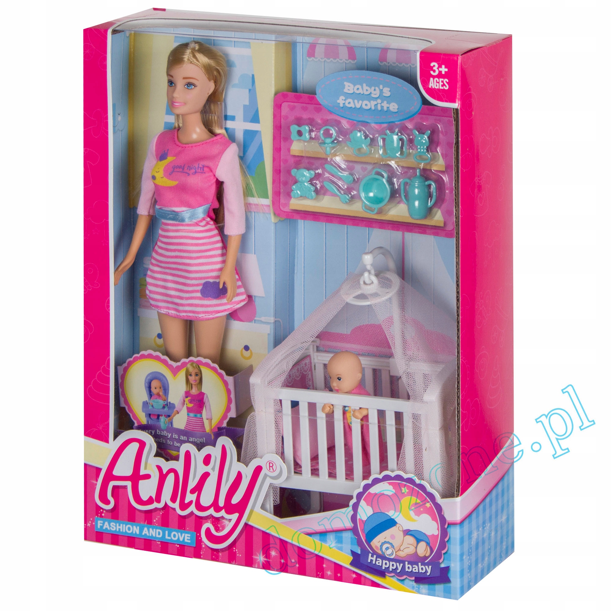 Кукла Анлили с малышом в кроватке и принадлежностями для кормления