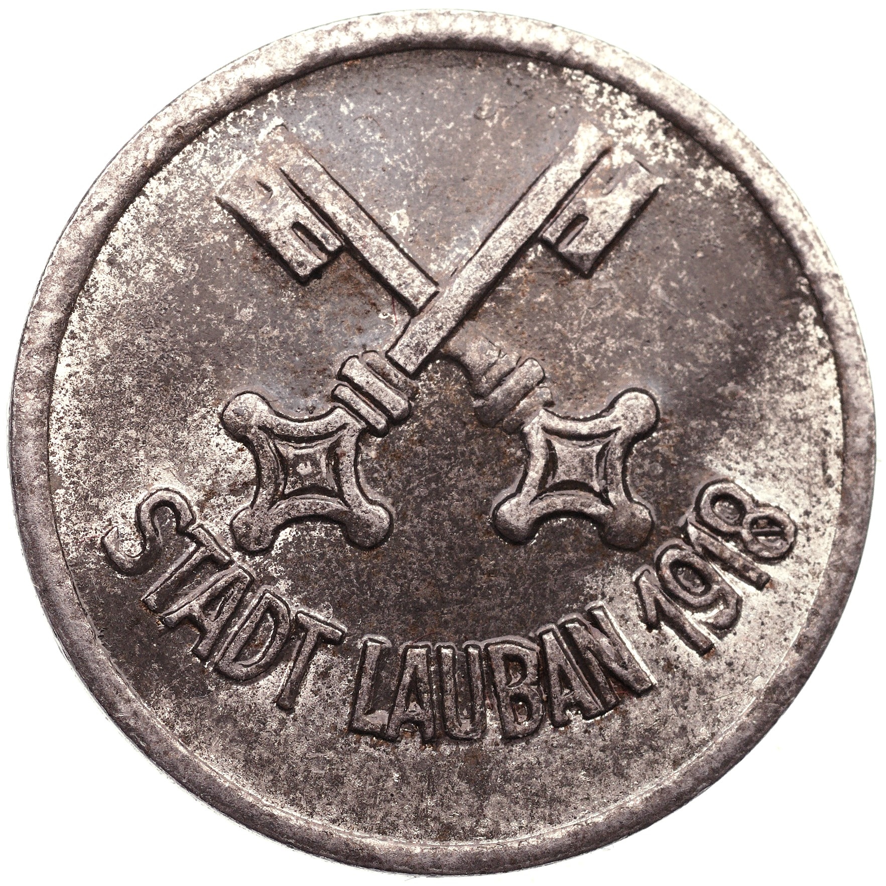 Любань (Лаубан), 5 пфеннигов 1918 г., железо, 2,43 г, 18,7 мм. Городские выбросы. Тираж: 31 250 шт.