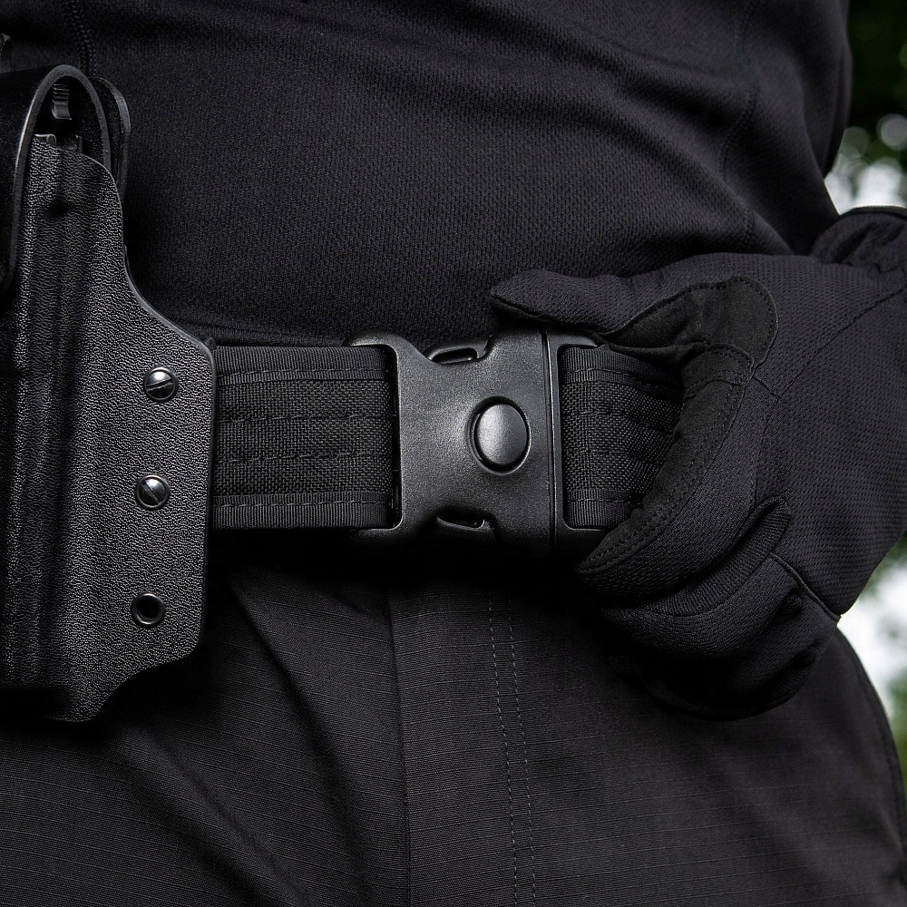 Во всем мире этот тип ремня называется "служебным". Это означает, что его носят чиновники, военные, охранники и полицейские.Ремень предназначен для ношения оружия в кобуре, запасных магазинов в подсумках и различных видов снаряжения, например фонарей, наручников и др.Ремень изготовлен из плотной нейлоновой ткани со специальной структурой нити, с гидрофобным покрытием. пропитка и полиуретановое покрытие под тканью, также производитель добавил пластиковые вставки для дополнительной жесткости ремня.Пластиковая пряжка «Фастекс» с тройной системой запирания защитит от случайного расстегивания ремня.< /п>