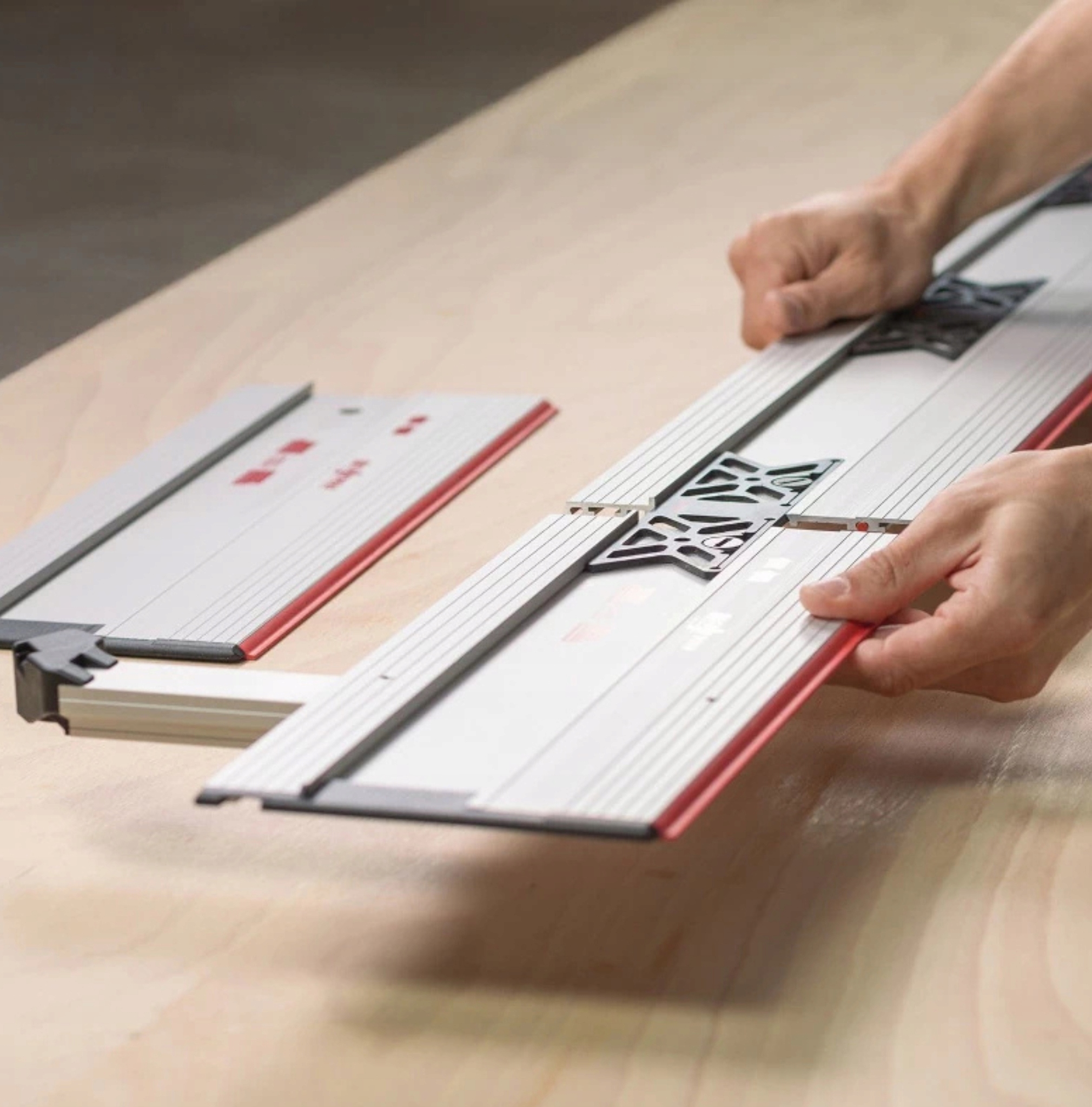 Благодаря элементам, соединяющим отдельные секции, направляющие рельсы могут быть объединены быстро и точно, получая тем самым различные длины, в зависимости от потребностей.