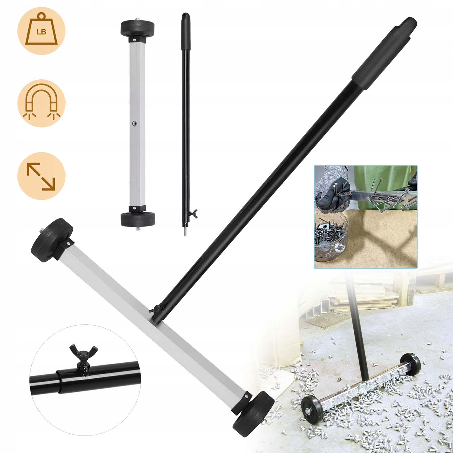 ➡ магнитная подметальная установка 43,2 см, поддержание грузоподъемности до 4 кг, является идеальным решением проблемы удаления небольших объектов из железного металла, таких как гвозди, контакты, гайки, винты и металлические чипсы с рабочих кладов или гараж. Магнета длиной 43 см. Длина основания магнита и круга составляет 43,2 см (17 '')