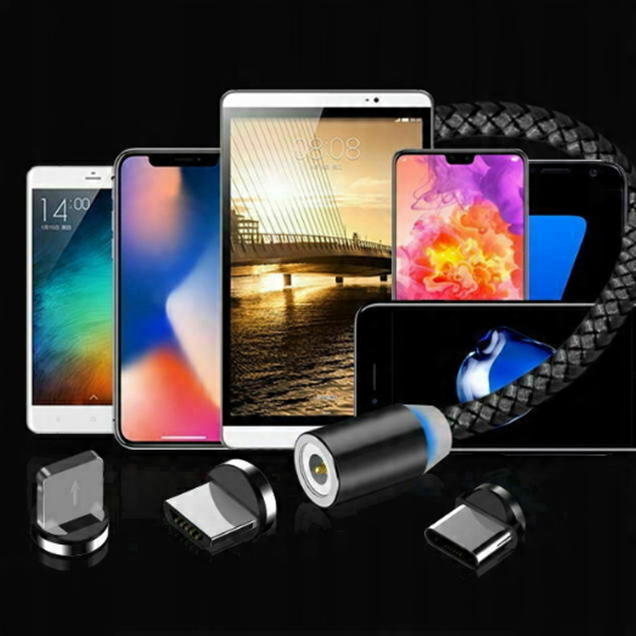 Магнитный кабель совместим с любым устройством, оснащенным портом USB - C, микро-USB, молния