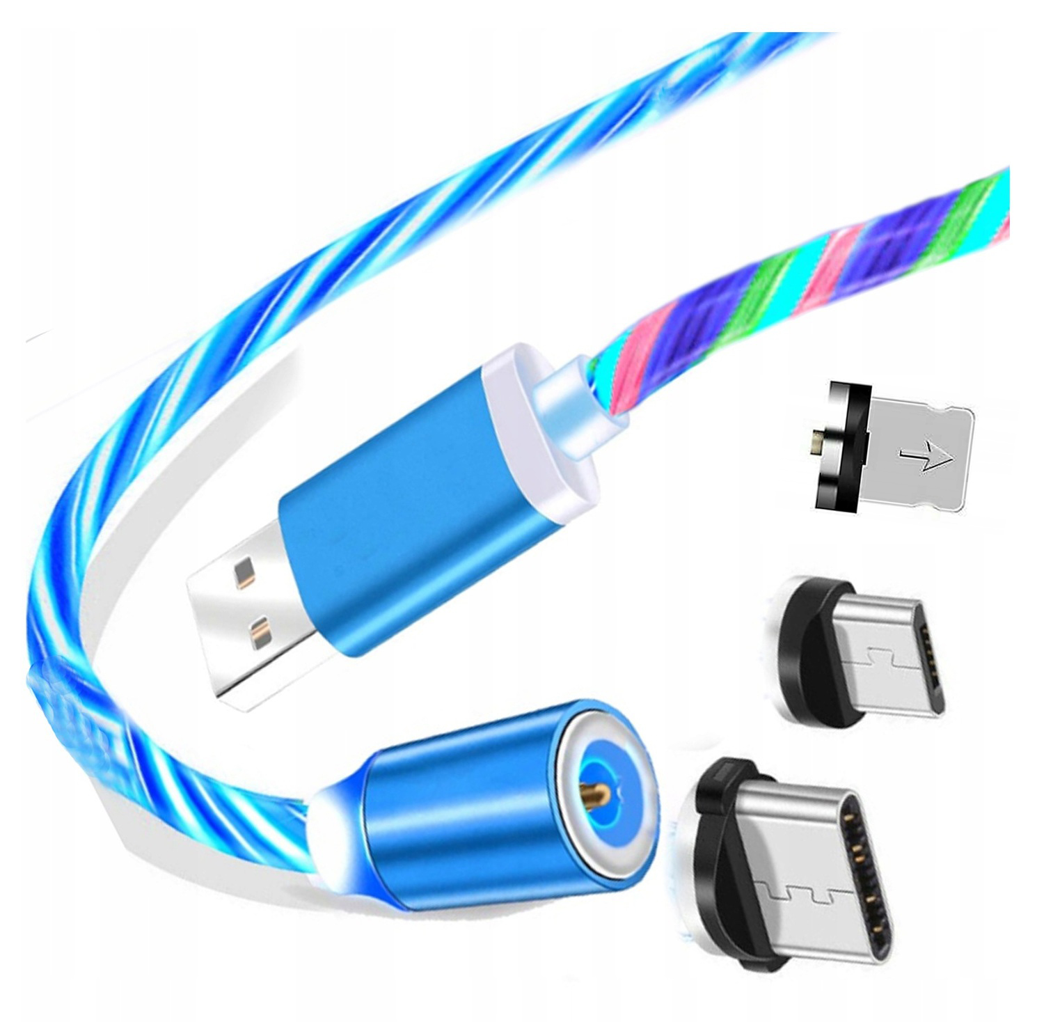 МАГНИТНЫЙ КАБЕЛЬ 3в1 IPHONE MICRO USB-C, СВЕТЯЩИЙСЯ