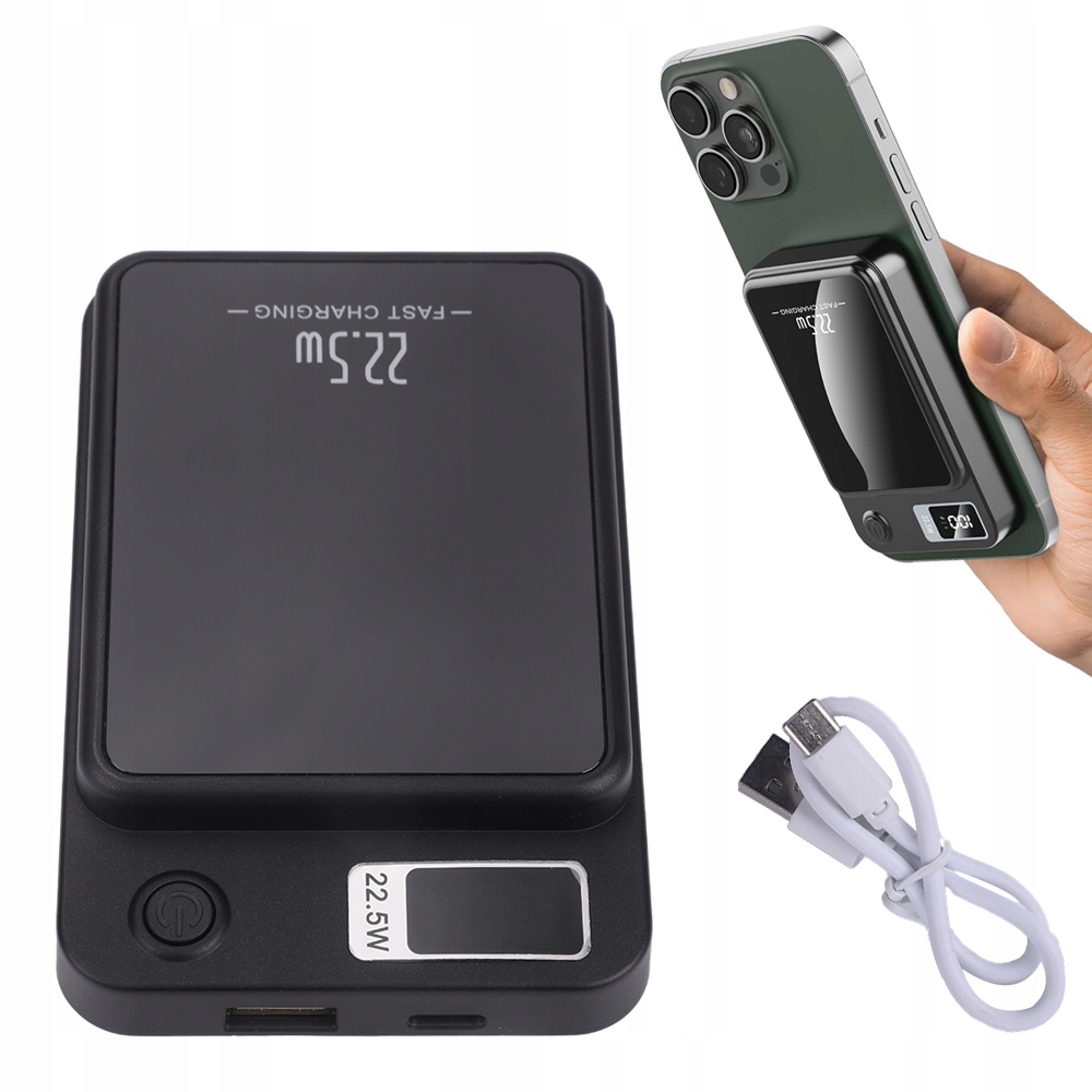 - Этот банк мощности совместим с магнитным корпусом и поддерживает быструю беспроводную зарядку 5 Вт/7,5 Вт/10 Вт.