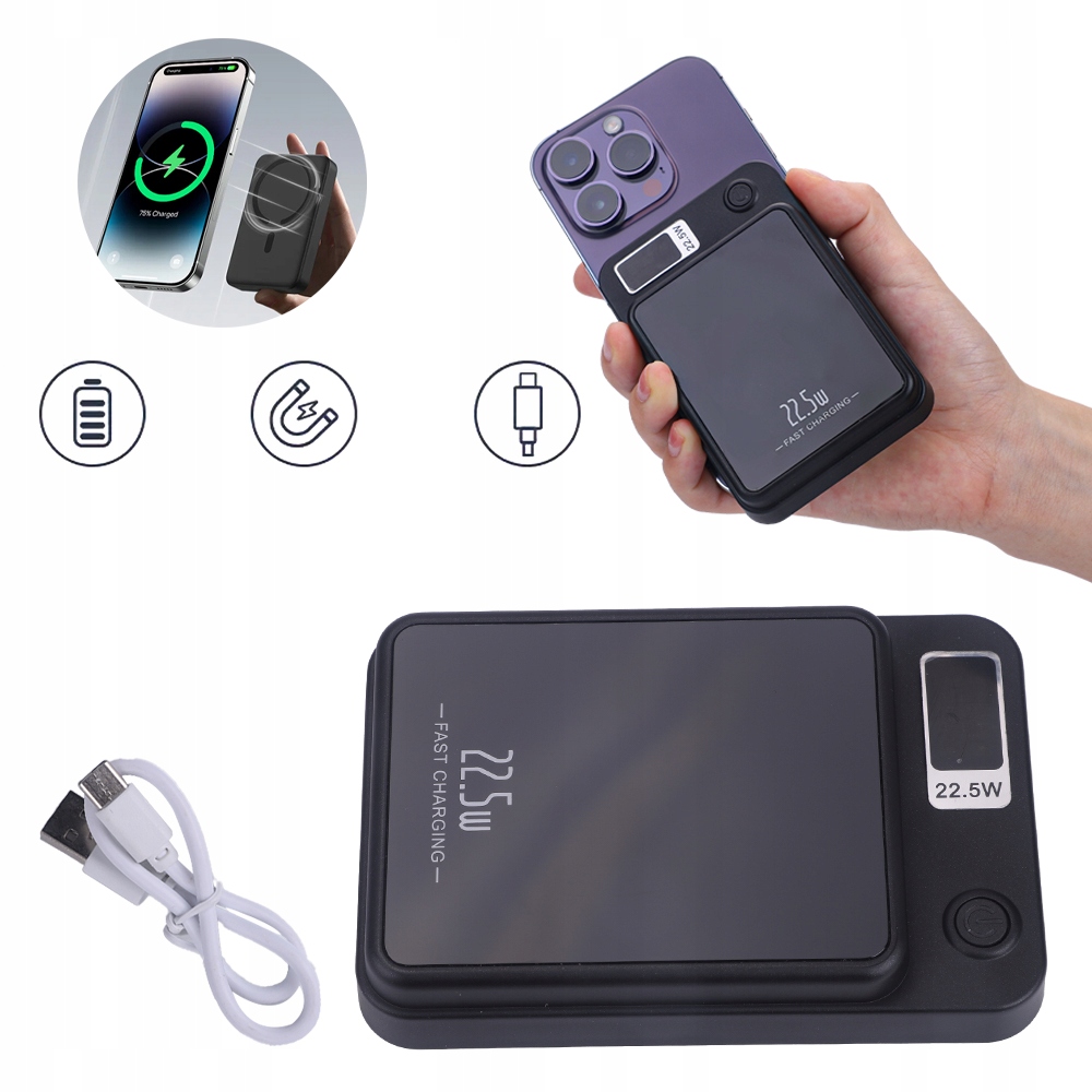 ✅10000 мАч | ✅ Магнитная зарядка ✅ Должна загрузка через USB | ✅pact и портативный контроль температуры ✅integentna ✅ Укладку трех устройств одновременно