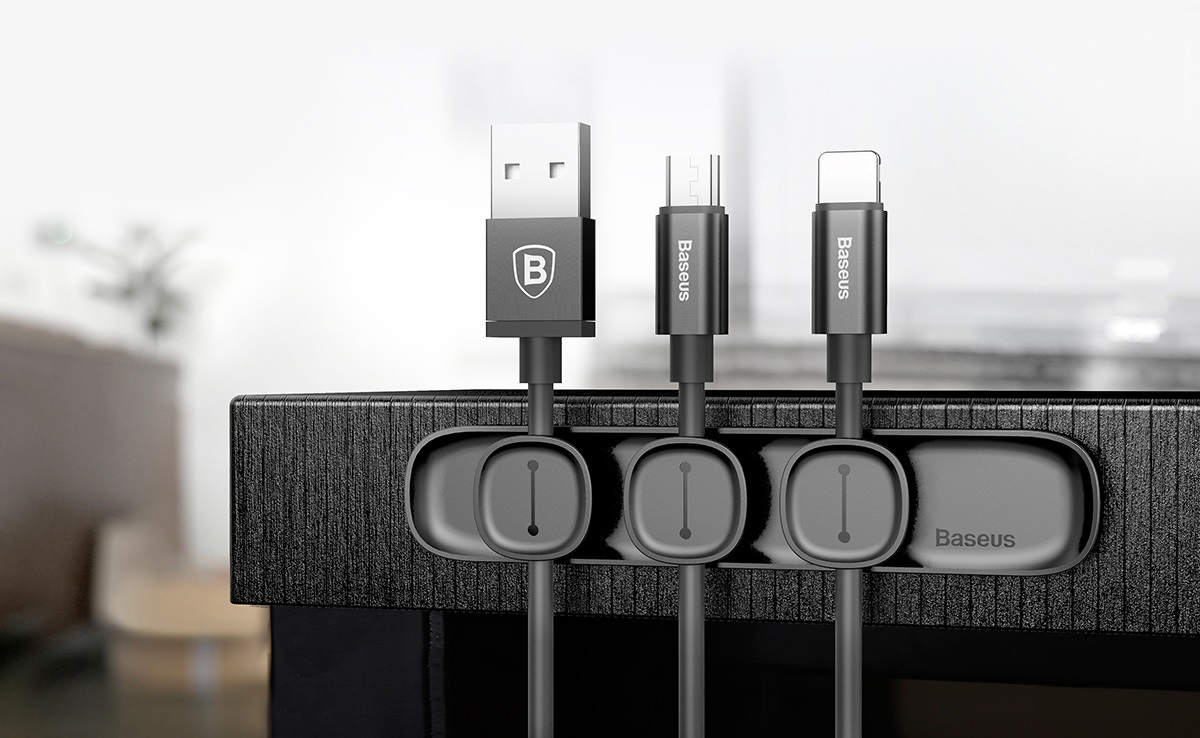 Практичный органайзер для кабелей Baseus позволит вам попрощаться с запутанными кабелями. Благодаря магнитному основанию и специальным держателям он позволяет надежно хранить кабели в одном месте. Магнит никак не влияет на качество зарядки.