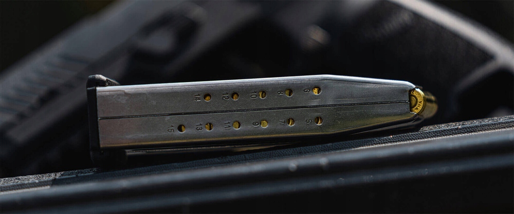 - Журнал использует боеприпасы 9x19 мм Luger/parabellum