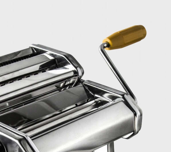 Маэстро паста позволяет перекатать тесто в разные толщины, а также благодаря переменным лезвиям для разрезания пасты до различной толщины и ширины. Удобное устройство очень проще в использовании, переключив стальную ручку на модуле катания на одно из девяти позиций, мы получим более тонкое тесто, которое будет отлично подходит для резки тонких нитей спагетти. Чтобы получить более толстую пасту, сверните более толстое тесто и нарежьте подходящим лезвием. Машина позволит вам быстро и эффективно приготовить макароны для любого типа блюда.