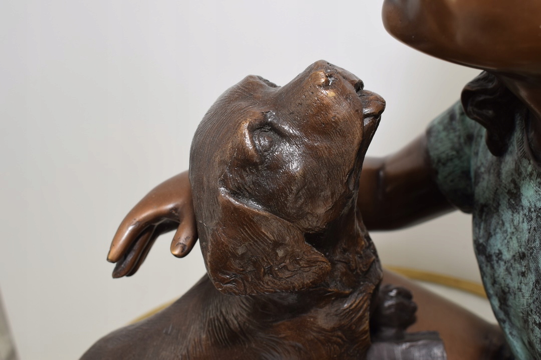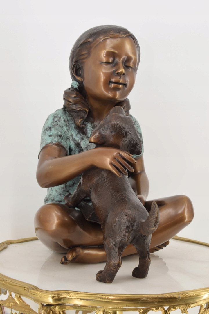 Маленькая девочка с собакой - фигура бронзовой скульптуры - сад подарочного дома