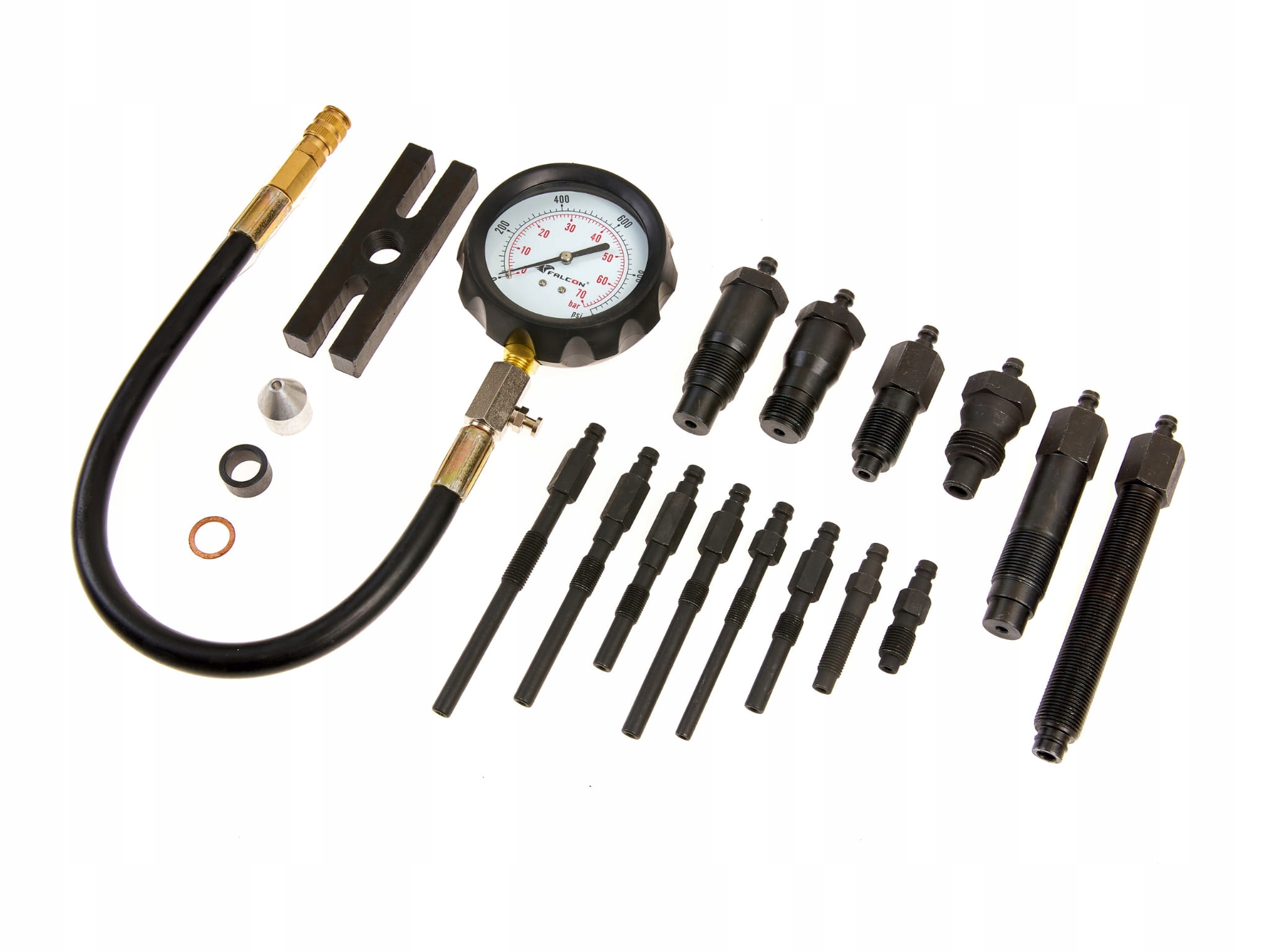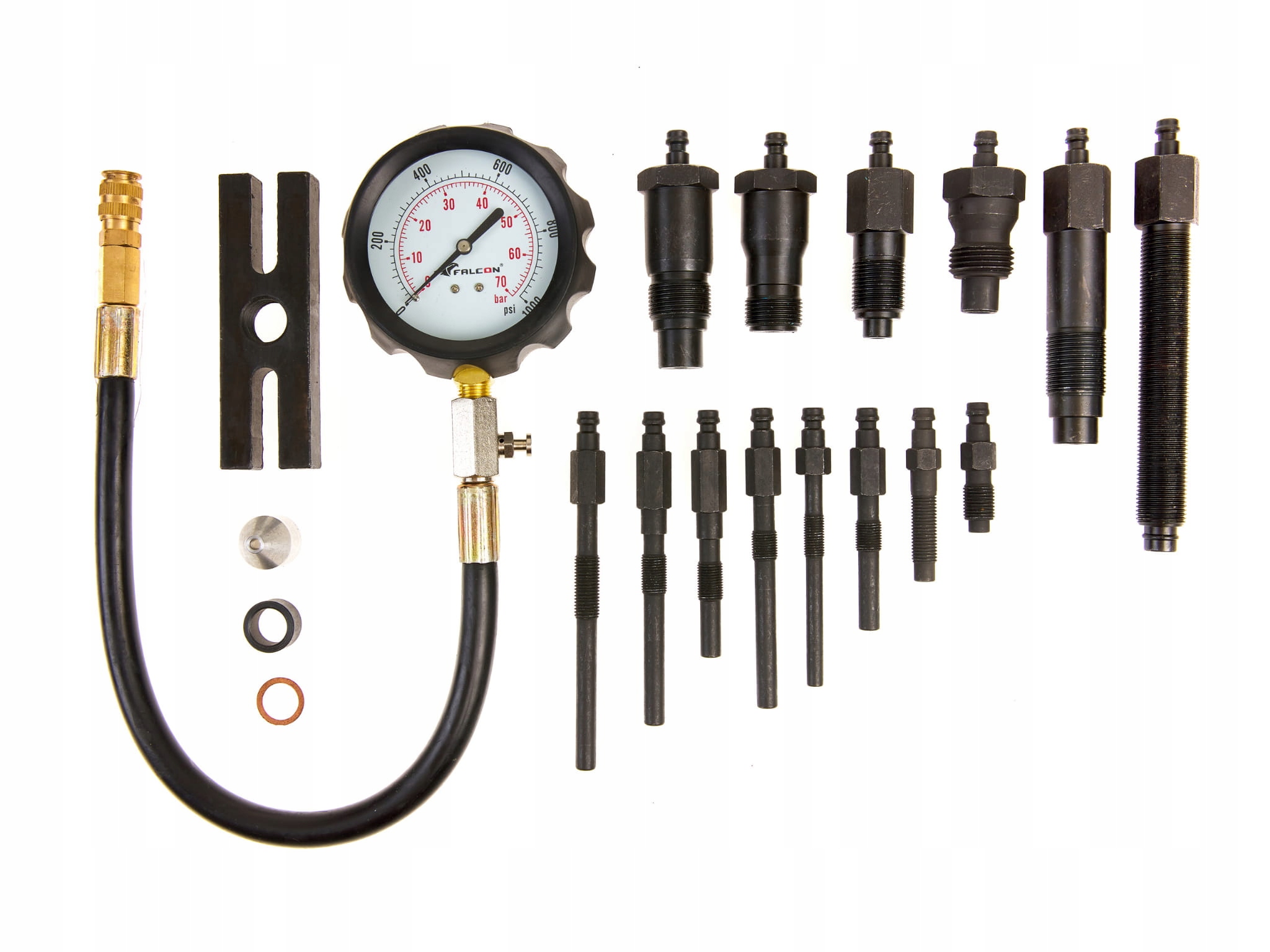 Чрезвычайно важным тестом, позволяющим оценить степень износа дизельного двигателя, является измерение давления сжатия. Для проведения диагностических испытаний в отдельных цилиндрах используются специализированные измерители давления сжатия. Для получения очень точного измерения стоит использовать качественный тестер, но помните, что полученные результаты не могут отличаться более чем на 10% от самого высокого измерения. Профессиональная диагностика дизелей без их разборки включает в себя мастерские инструменты, поддерживающие это состояние. Этим ожиданиям соответствует превосходный манометр FALCON F06011. Тестер выпускается в комплекте, позволяющем измерять и диагностировать давление сжатия в дизельных двигателях легковых и коммерческих автомобилей. Предпочтительный метод проверки предотвращает повреждение и загрязнение внутри двигателя.