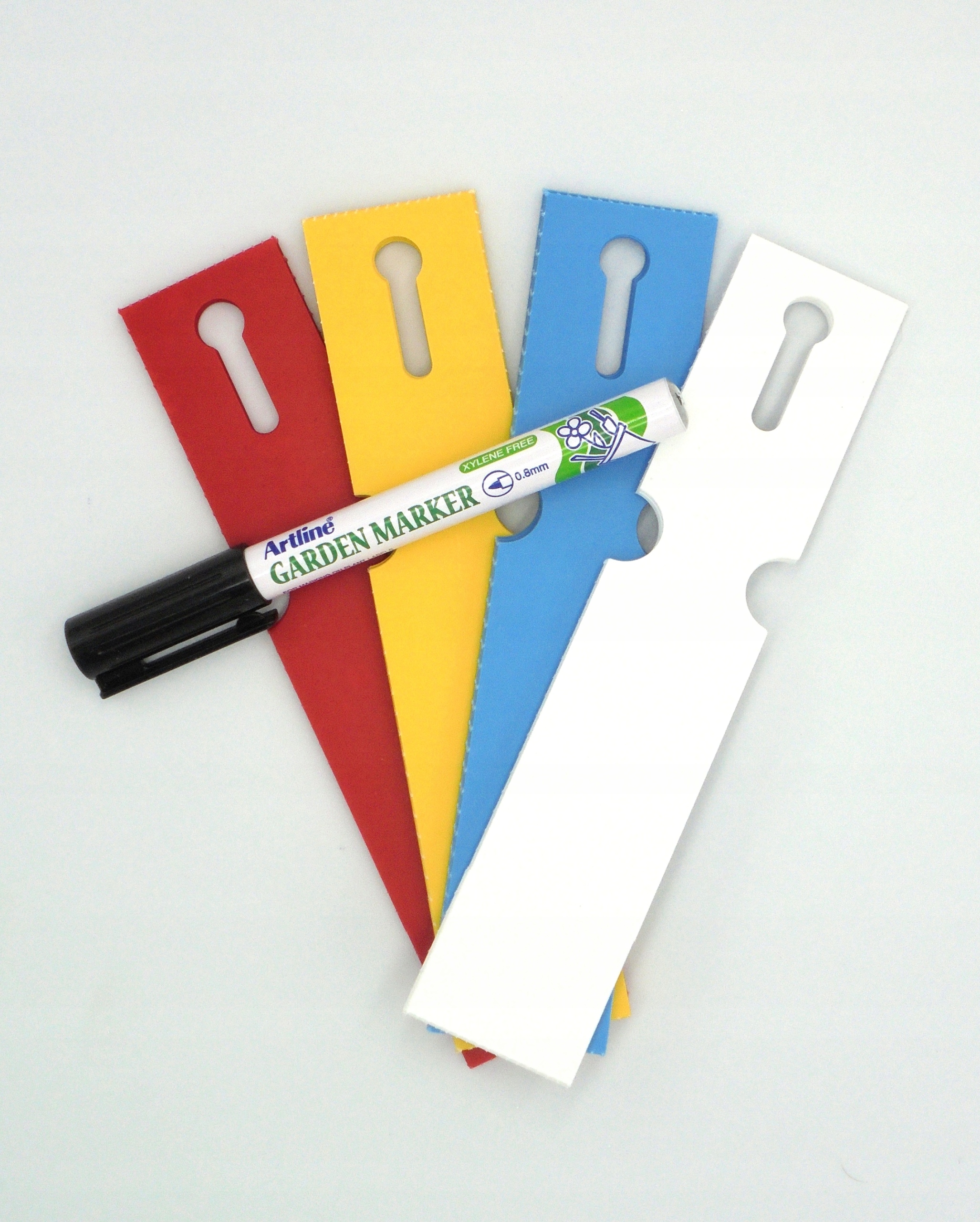 Цвета: белый, красный, желтый, синий Другие размеры также доступны Материал с сертификатом контакта с едой - также подходит для маркировки съедобных растений Адаптировано для использования в течение многих сезонов