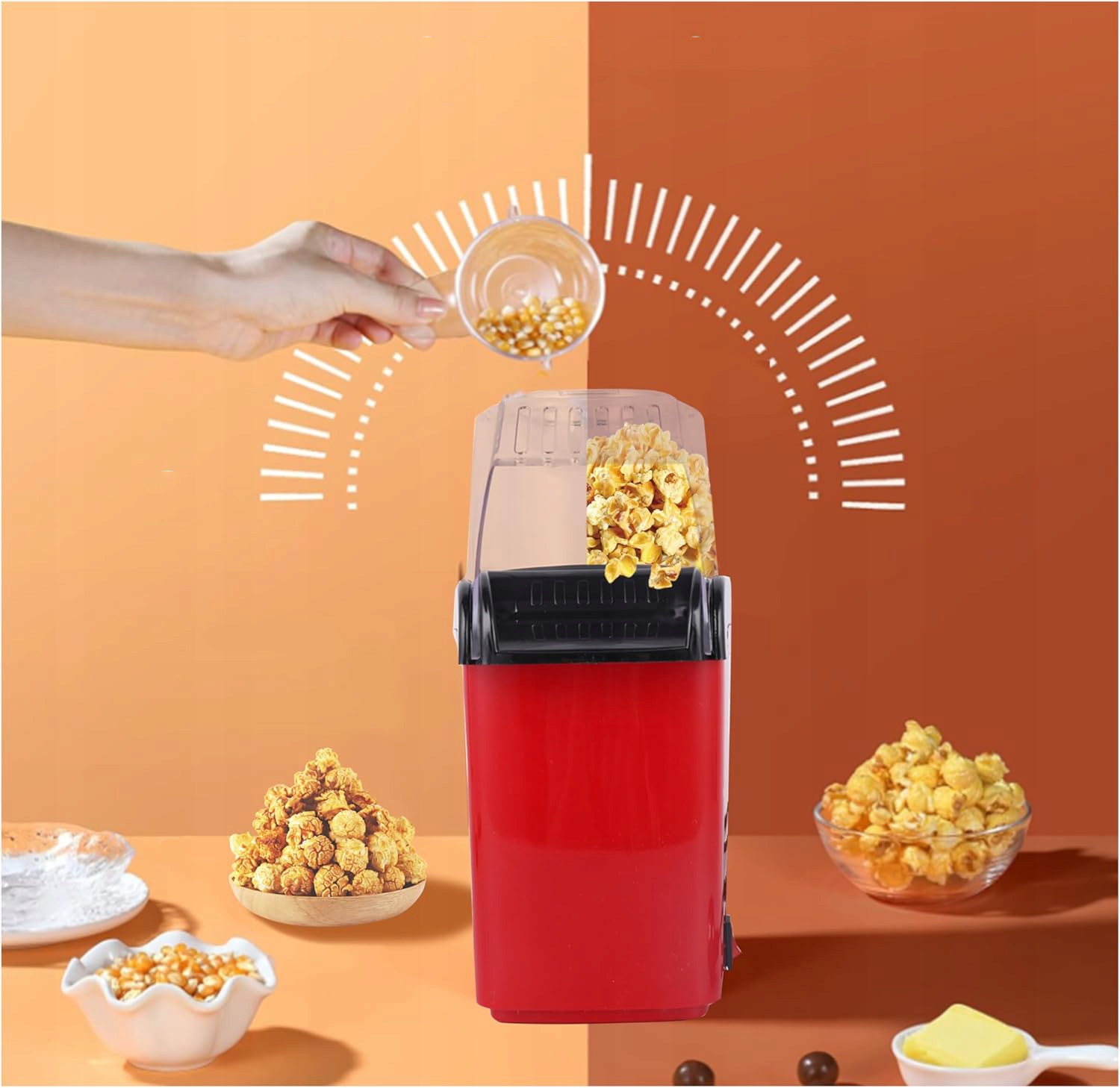 - Легко в использовании, одного нажатия кнопки достаточно, чтобы быстро подготовить попкорн для различных случаев, таких как игры, события и вечера кино.