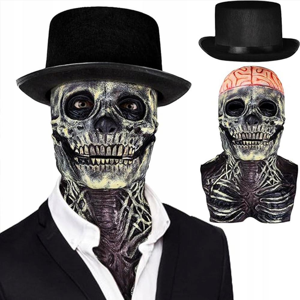 МАСКА ТРУПНИЙ ЧЕРЕП РЕАЛІСТИЧНИЙ ЛАТЕКСНИЙ МОЗОК + КАПЕЛЮХ, МАСКА ЧЕРЕПА