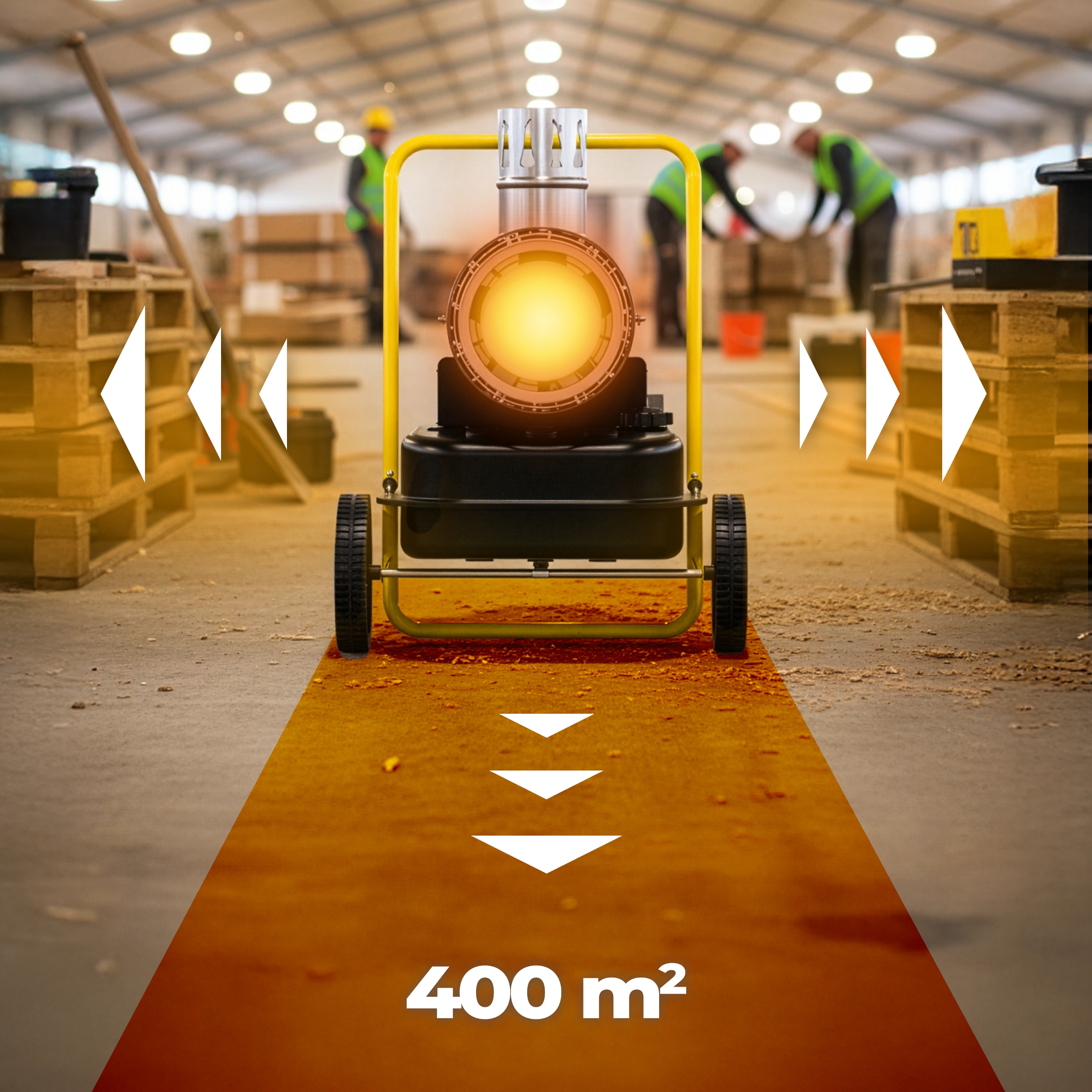 ✔️ Обогрев больших площадей – эффективная работа на площади до ок. 300 м² (залы, мастерские, склады, стройки, фермы)