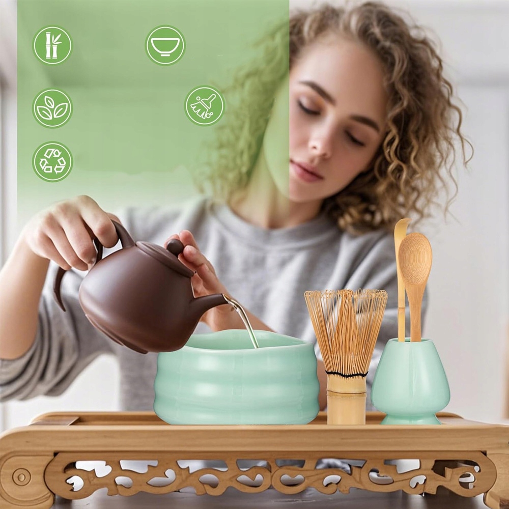 Набор содержит полные инструменты, такие как венчик, 2 чайные ложки, подставка для венчика, миска для чая, обеспечивая все, что вам нужно для традиционной чайной церемонии. где угодно и время.
