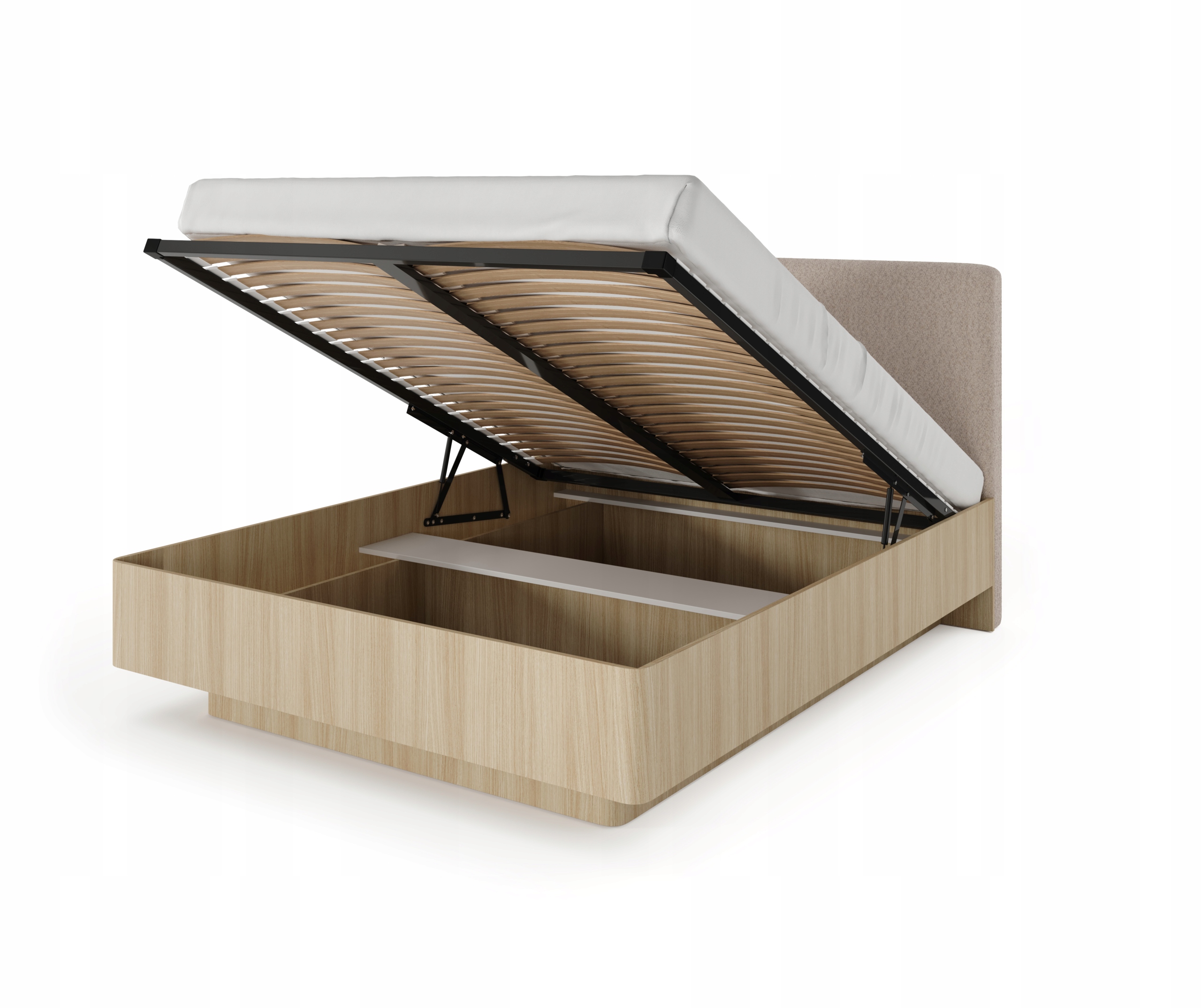 Кровать имеет систему свободного открытия, контейнер для постельных принадлежностей и деревянная рама.
