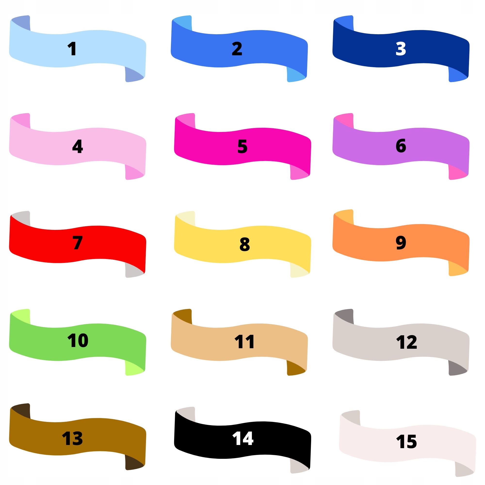 У нас есть гладкие ленты цветов 1 - 15