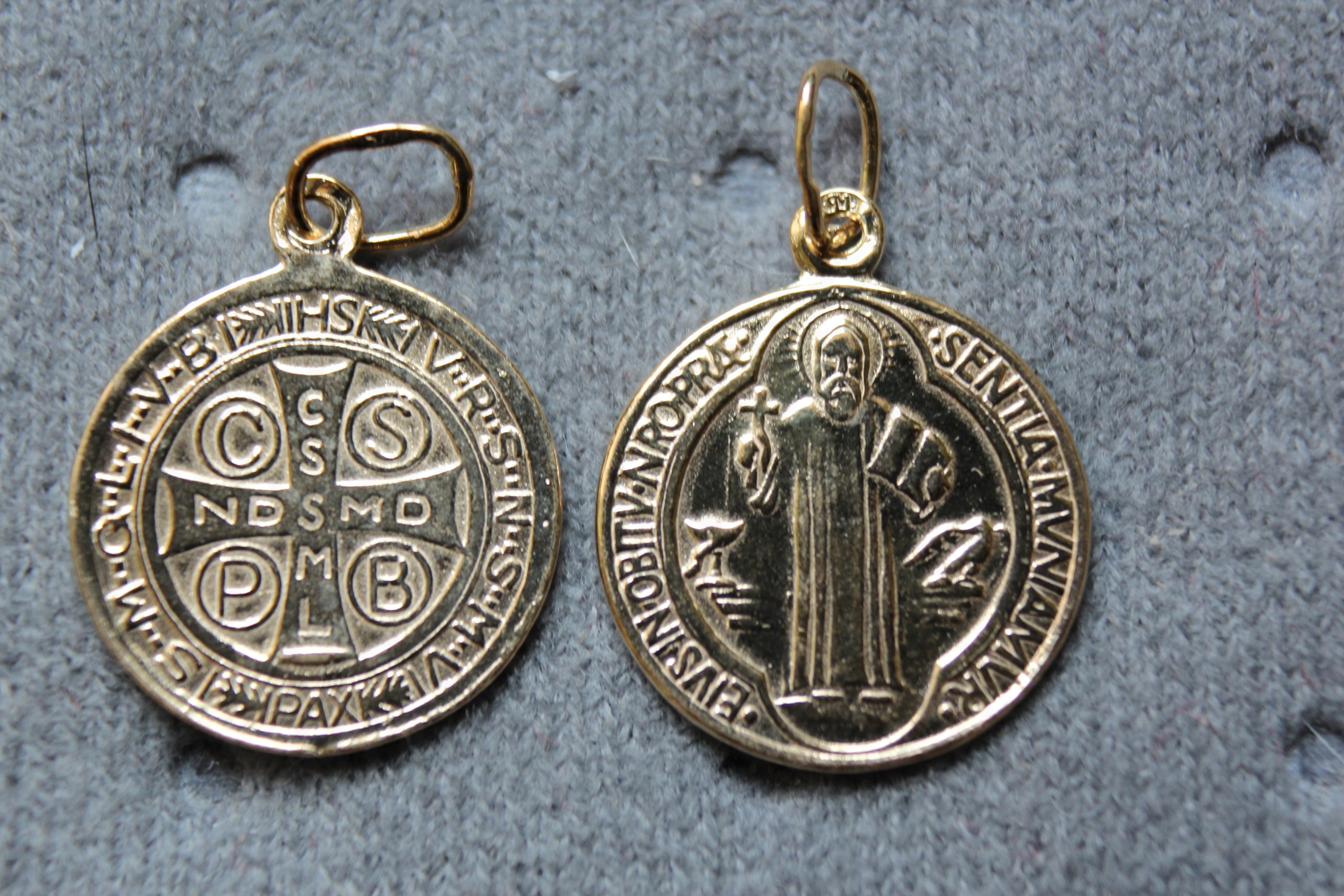 Медаль Святого Бенедикта 1,4 г ПОЗОЛОЧЕНЕ СРІБЛО