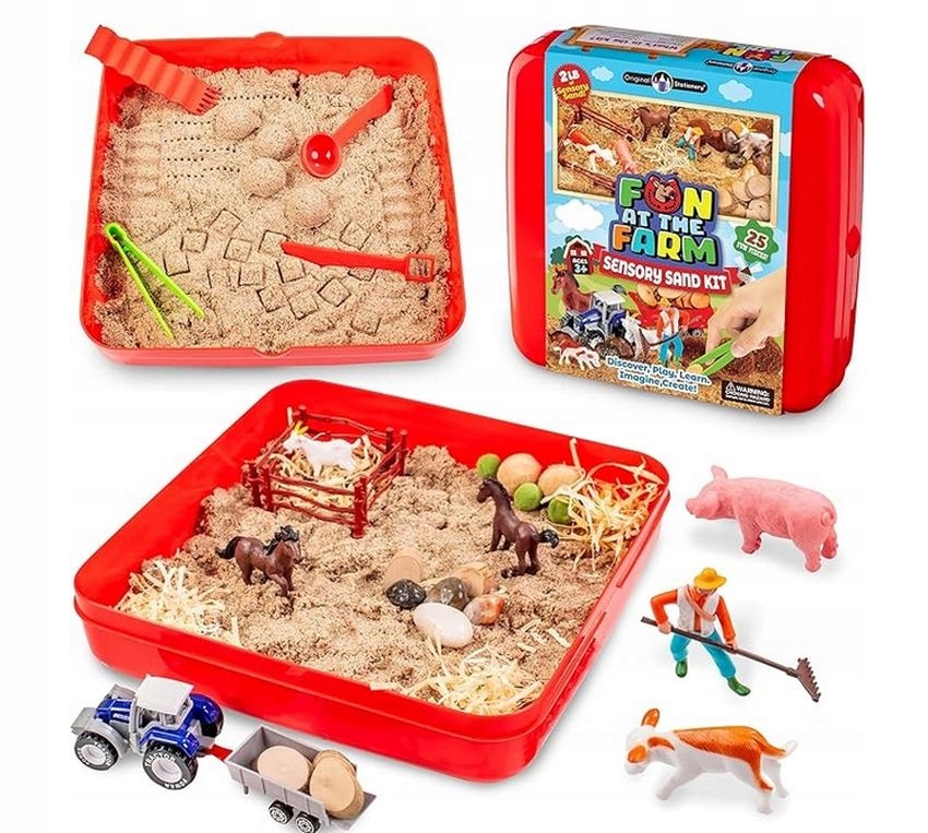 датчики фермы Farm Fun Kit, игрушечный кинетический песок - ферма с животными и трактор. Не только для сенсорных игр 900 г волшебного песка