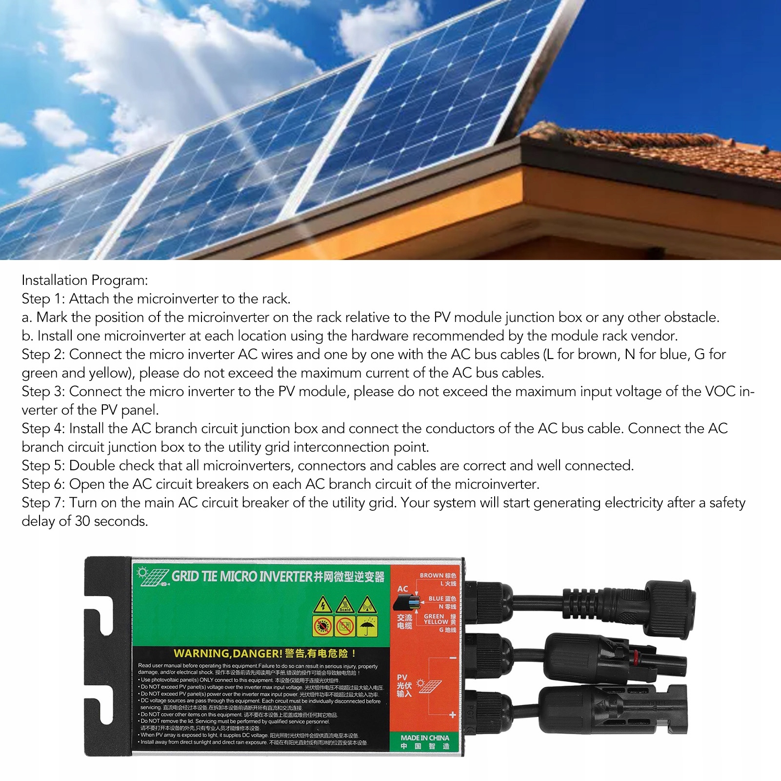 1. СИНХРОННЫЙ ВЫХОД: Этот микросетевой инвертор представляет собой компактное устройство, которое преобразует мощность постоянного тока в мощность переменного тока для питания приборов или офисного оборудования и подключает его к электросети. Выход переменного тока микроинвертора синхронизирован и находится в фазе с электрической сетью