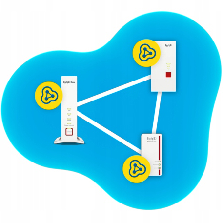 Mesh Wi-Fi с FRITZ!:Устройства FRITZ! они позволяют вам свободно настраивать размер сети Wi-Fi одним нажатием кнопки. Подключите свой FRITZ!Box к интеллектуальным усилителям FRITZ!Repeater и адаптеру ПЛК FRITZ!Powerline с помощью Wi-Fi. Таким образом, вы сможете адаптировать свою домашнюю сеть к своим индивидуальным потребностям и наслаждаться комфортом сети MESH с FRITZ!.