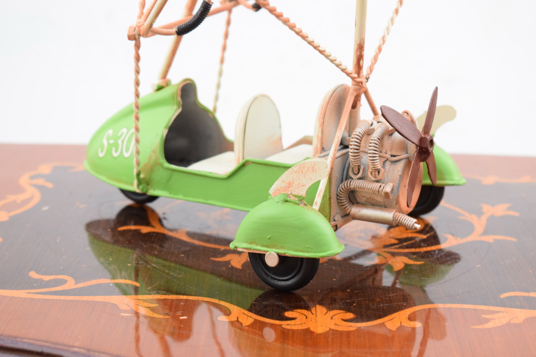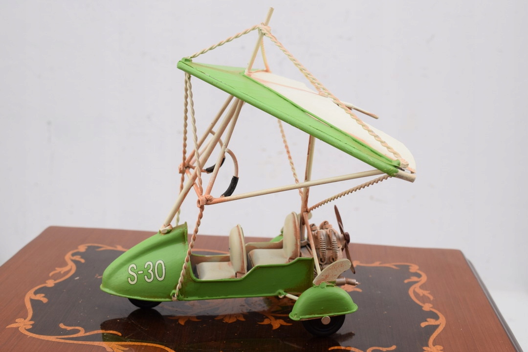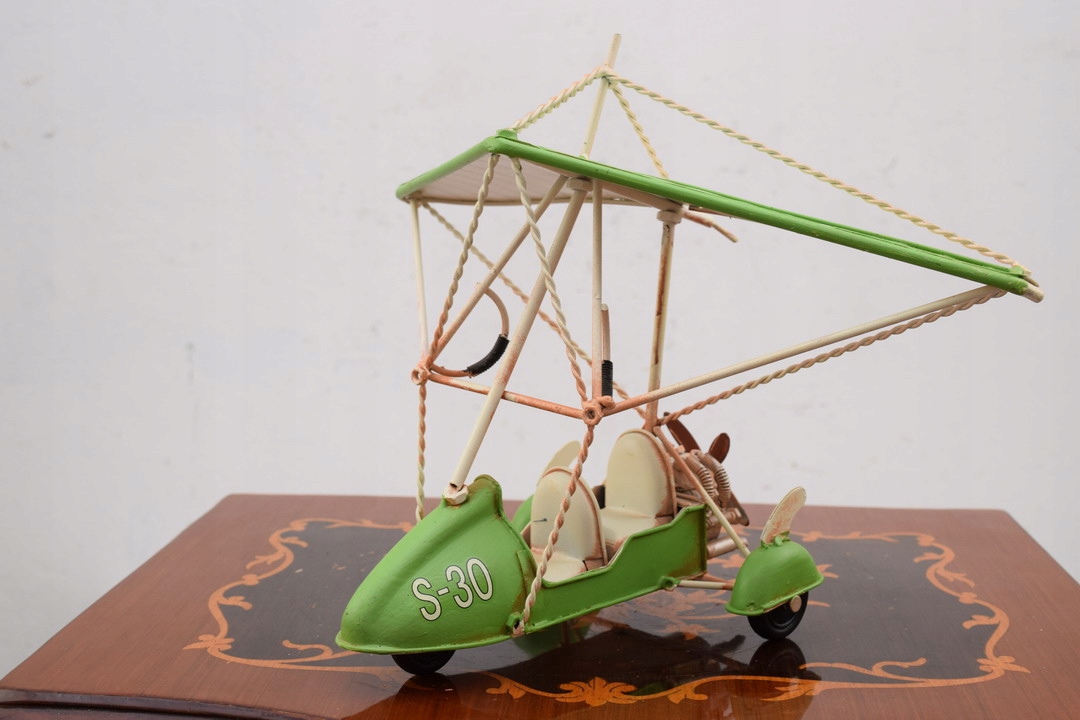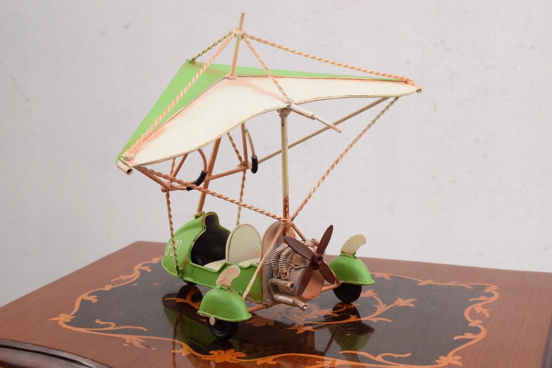Этот зеленый металлический винтажный параплатель. Hang Glider - это необычная и очаровательная игрушка, которая переносит нас в мир полетов и приключений. Изготовленный из твердого металла, он имеет подлинную внешность и тщательно сделала детали, которые добавляют его характер.