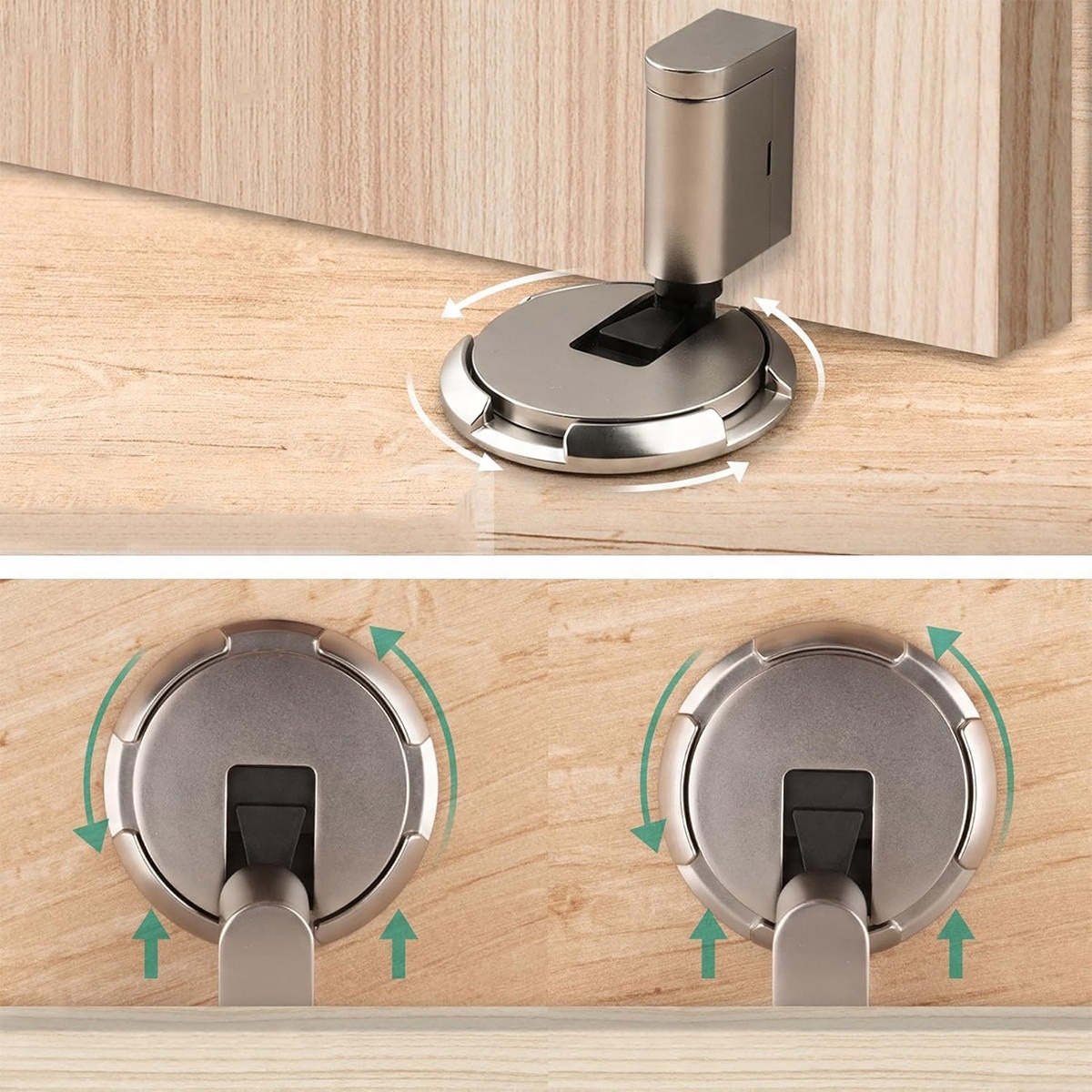 Этот предел двери оснащен прочным механическим механизмом амортизации пола, который безопасно держит дверь на месте, предотвращая сильное воздействие и обеспечивая плавную, амортизированную остановку. Это отлично подходит для защиты стен, дверей и полов от повреждений.