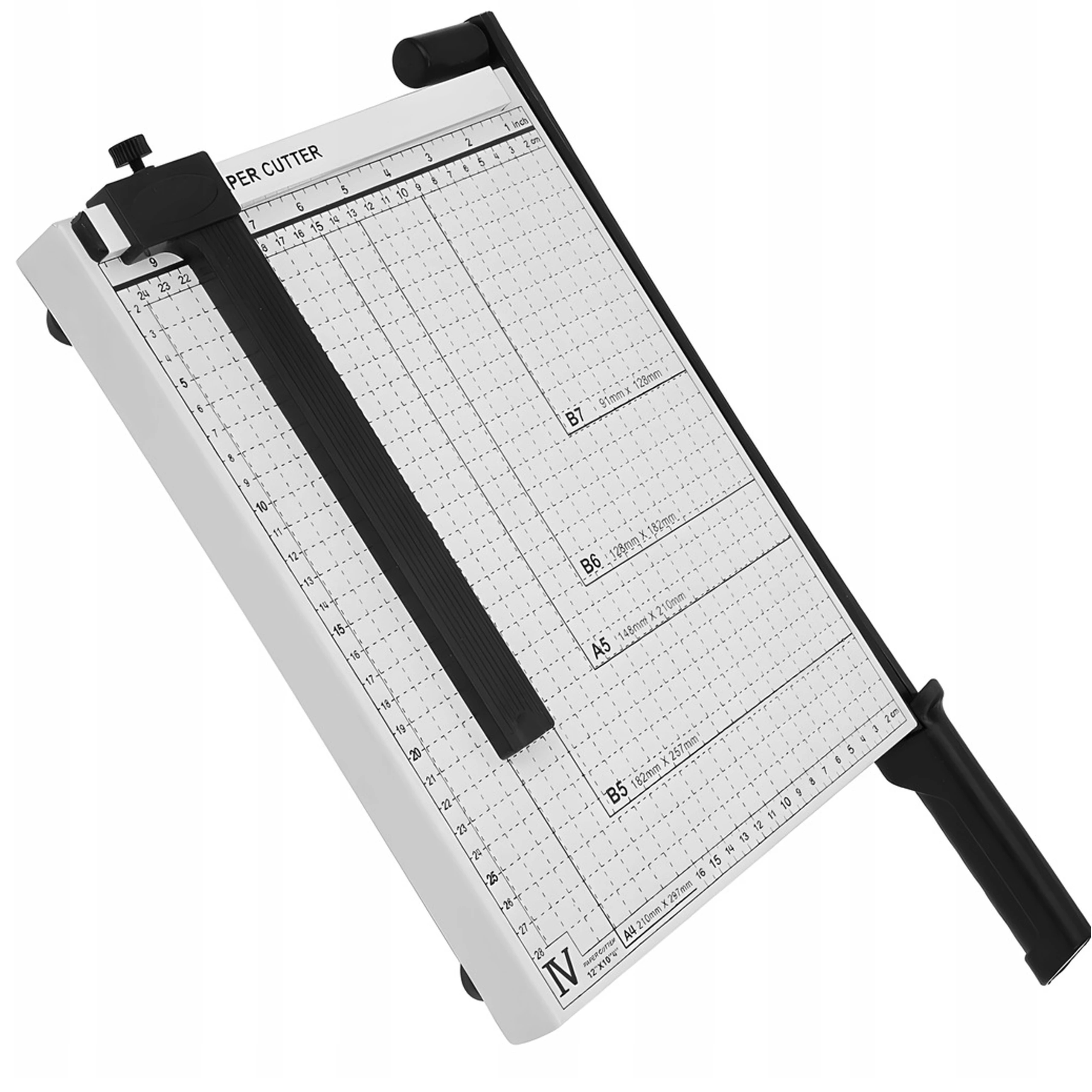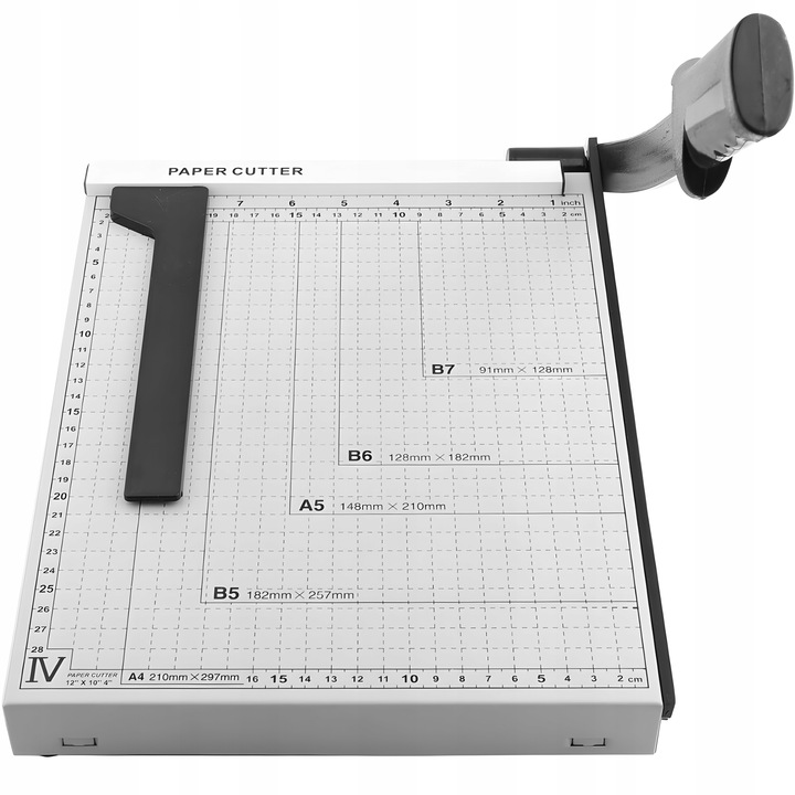 - Стабильная, металлическая конструкция гарантирует точную резку и долговечность устройства. Масштаб на поверхности режущей поверхности облегчает точное соответствие формату бумаги.