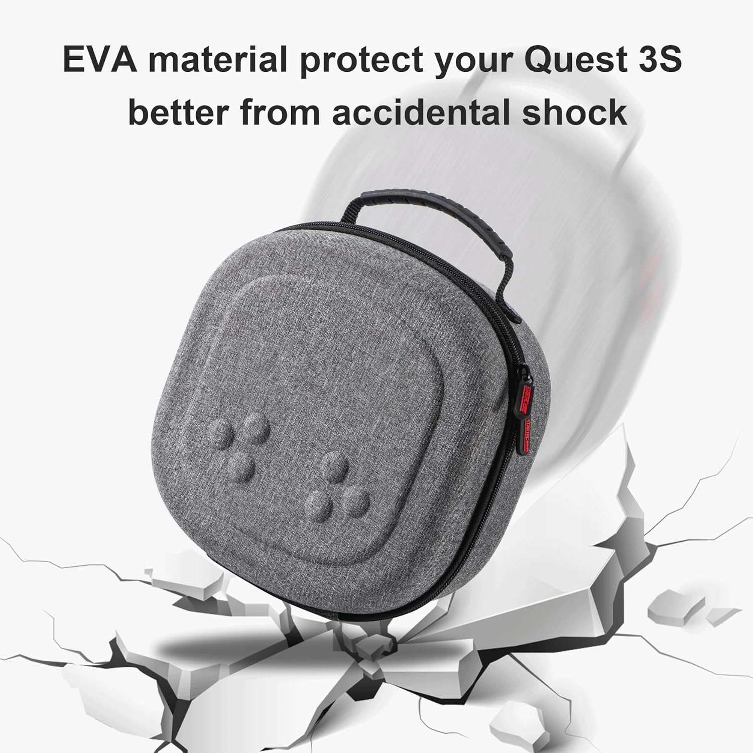Небольшое корпус, но большая емкость: корпус для Oculus Quest 3S имеет достаточно места для набора наушников VR, 2 сенсорных контроллеров и других аксессуаров, таких как зарядка кабеля, источник питания (не входит в комплект).