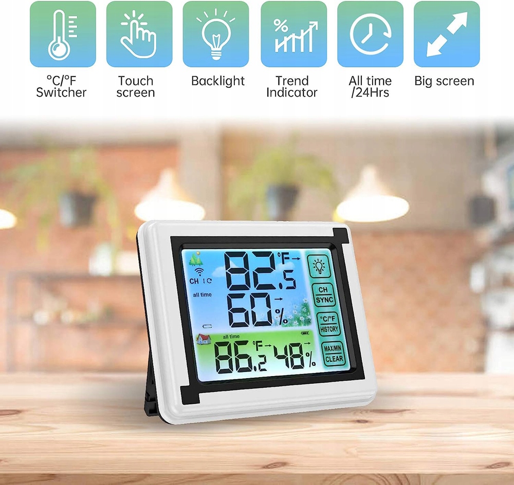 - Поддерживает функцию памяти. . Он может записывать самую высокую и самую низкую температуру и влажность. Вы также можете просматривать исторические данные о температуре и влажности.