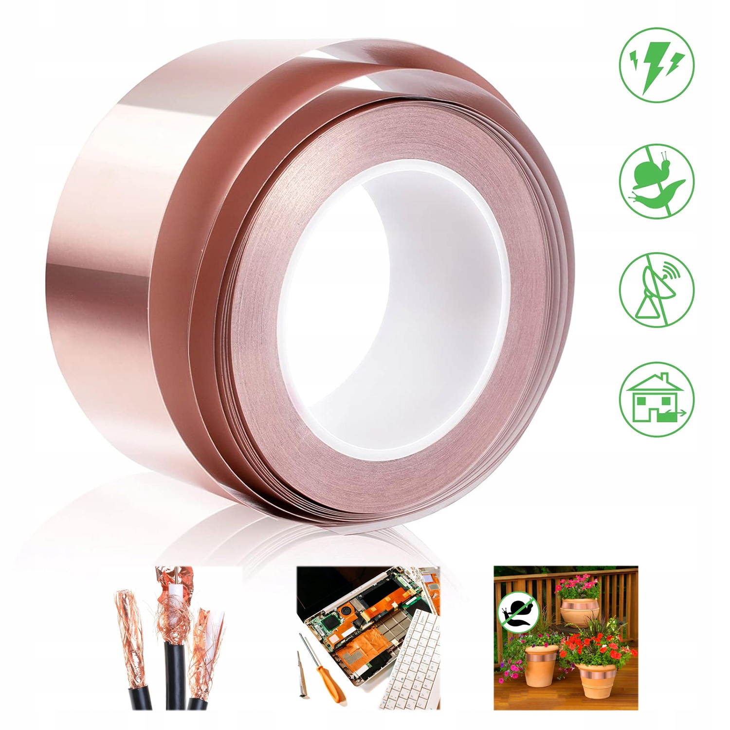 ⏩⏩ 25 м, медная лента, тканя, очистка улитка, медная пластиковая лента с проводящей клейкой, шириной 50 мм, самоадгезивная медная барьерная лента для скрининга гитары и EMI, паяль, электрической ремонт 🌿 P>
