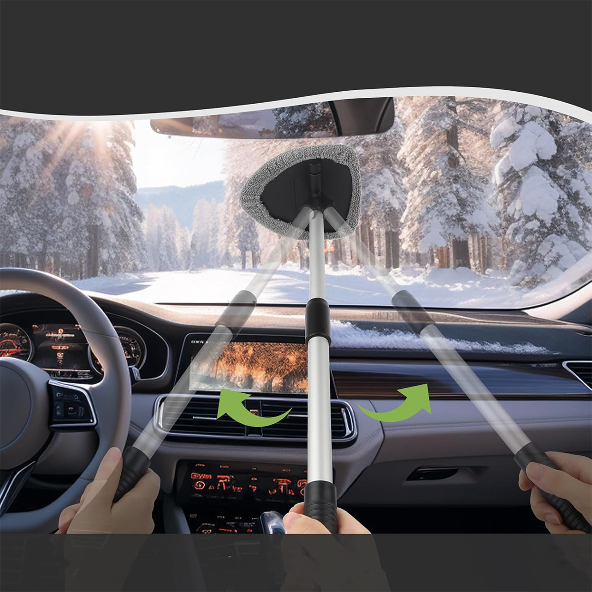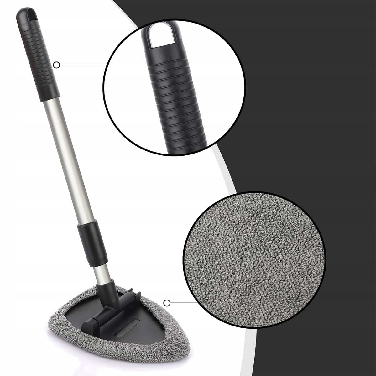 Комплект для очистки окна с расширением и вытирающей насадкой, который можно наклонить, чтобы лучше добраться до углов между приборной панелью и лобовым стеклом. Он достигает укромных уголков, которые я не могу легко добраться, поэтому мне не нужно проходить, чтобы очистить окна автомобиля на полпути.